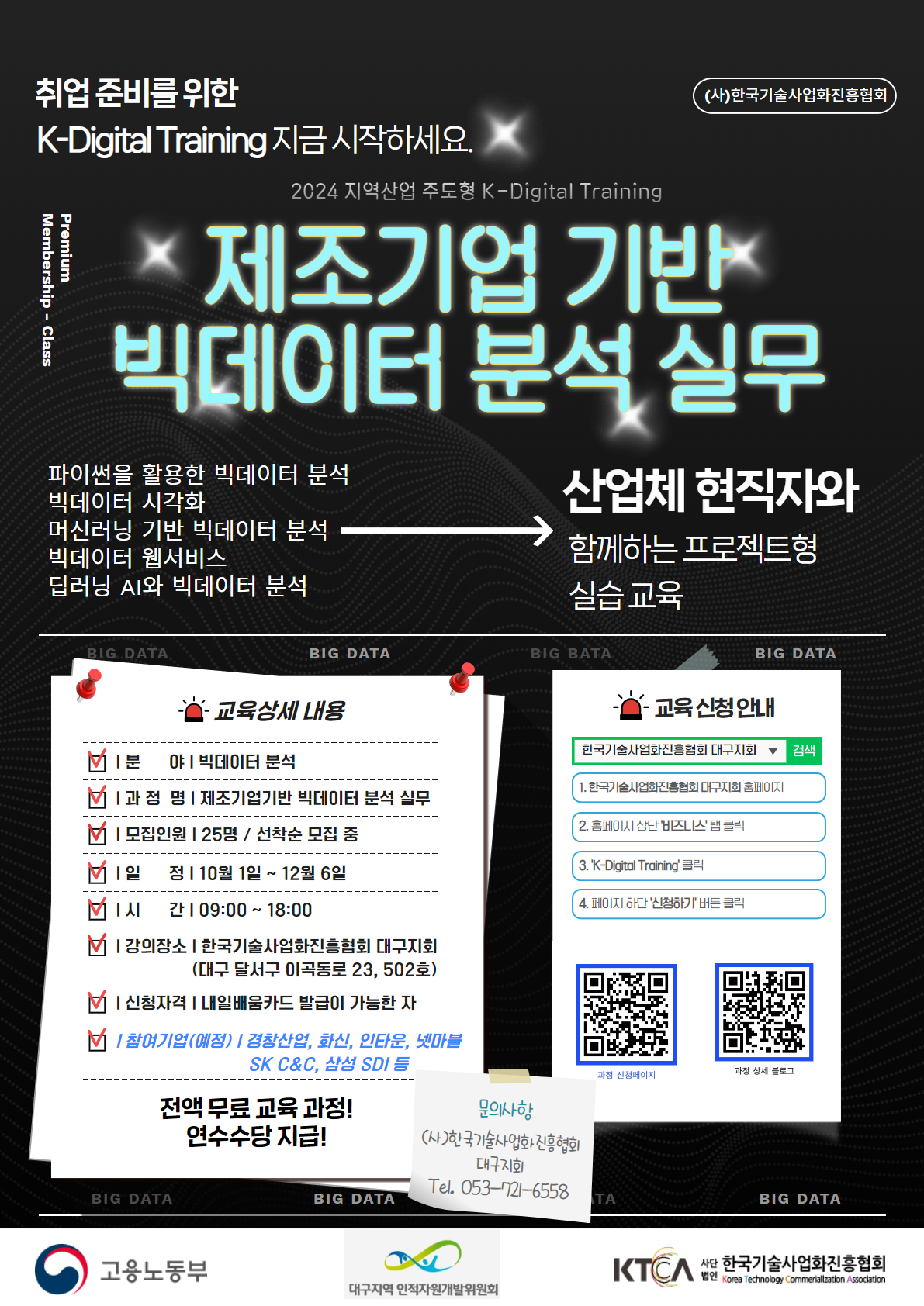 과정명 : 제조기업기반 빅데이터 분석 실무