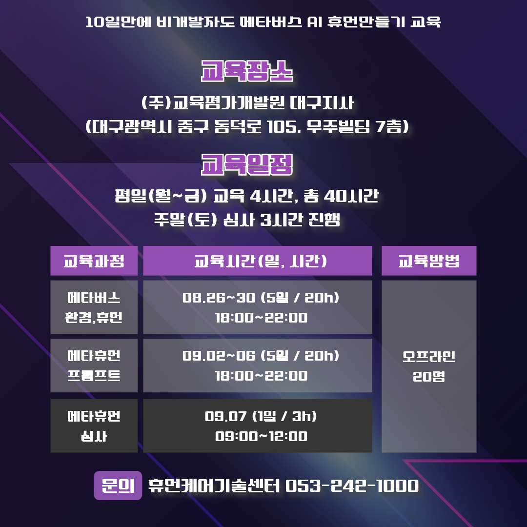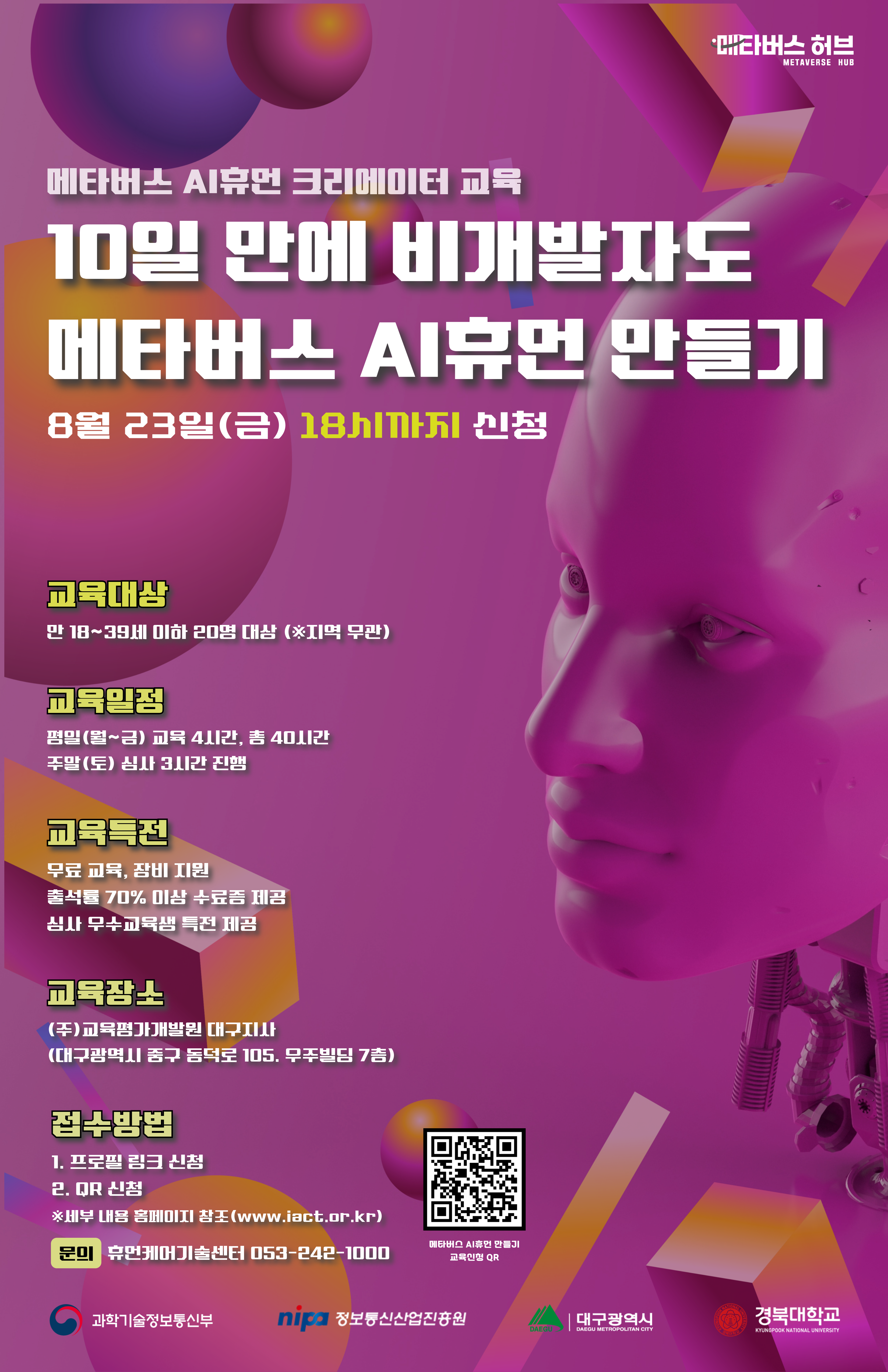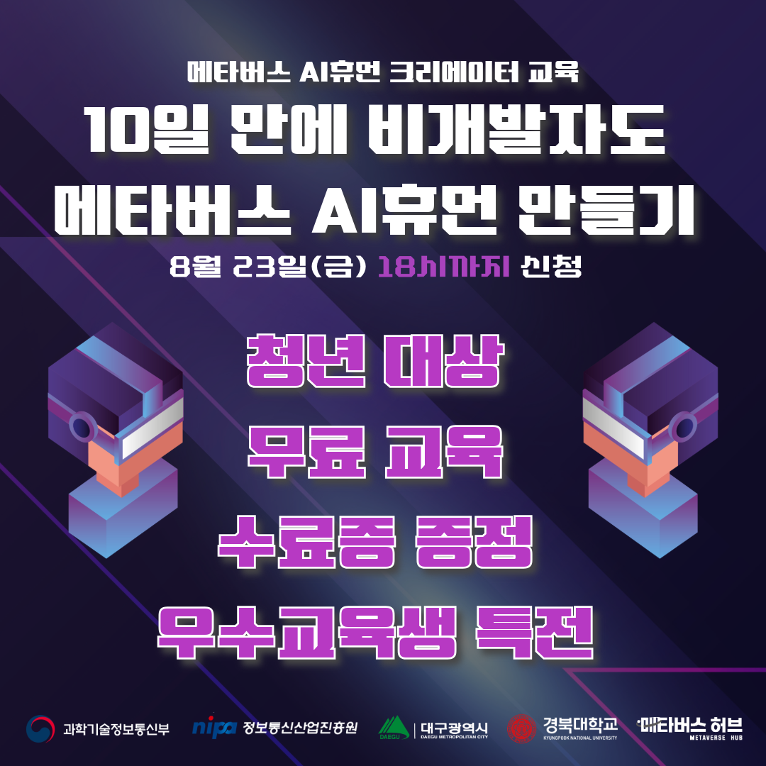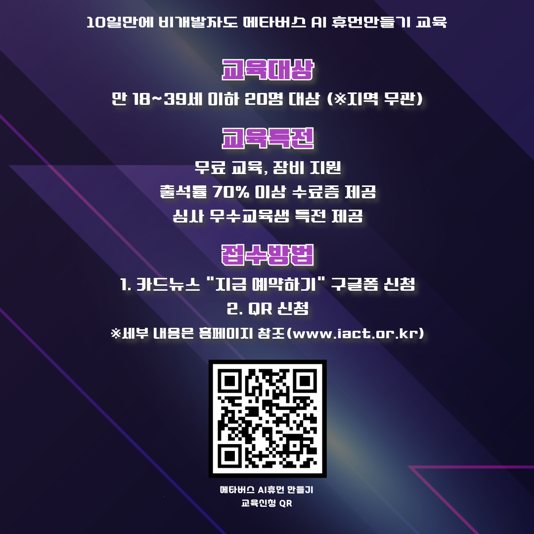 비개발자도 10일 만에 배울 수 있는 메타버스 AI휴먼 만들기 교육을 홍보합니다!