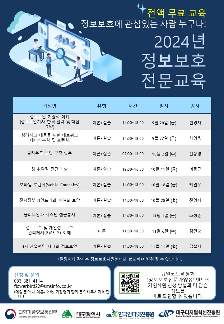 2024년 정보보호 전문교육 안내작성자 : 류지민 작성일 : 24-08-29