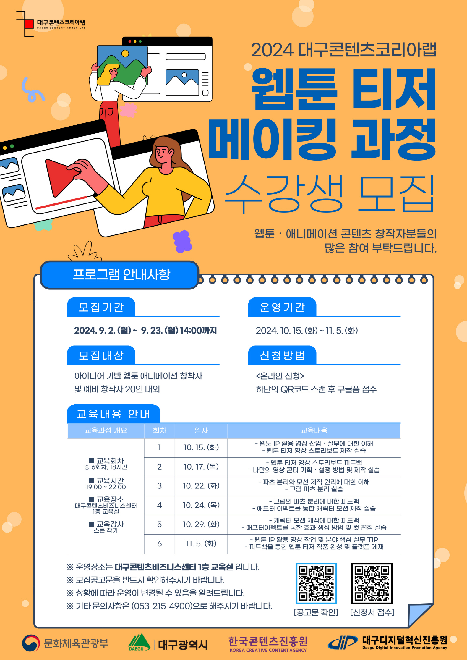 2024년 대구콘텐츠코리아랩 크리에이터 아카데미 웹툰 티저 메이킹 과정 참가자 모집작성자 : 신은경 작성일 : 24-09-02