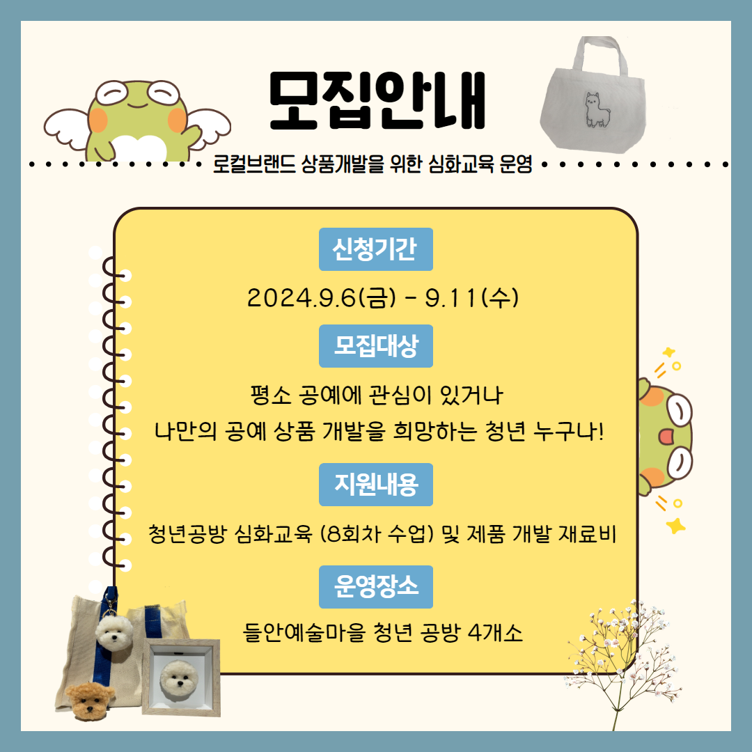💡모집대상 : 평소 공예에 관심이 있거나 나만의 공예 상품 개발을 희망하는 청년