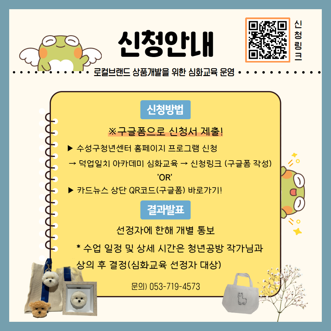 1. 수성구청년센터 홈페이지 프로그램 신청 -> 덕업일치 아카데미 심화교육 -> 신청링크(구글폼 작성)