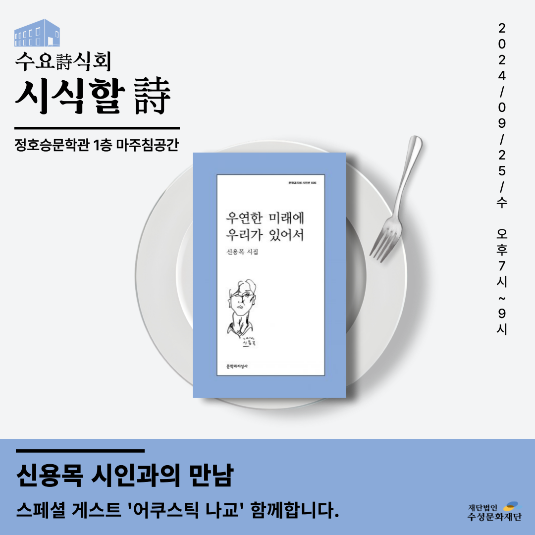 정호승 문학관 "수요詩식회" 중 두 번째 프로그램 「시식할 詩 : 우연한 미래에 우리가 있어서」 가 열립니다.