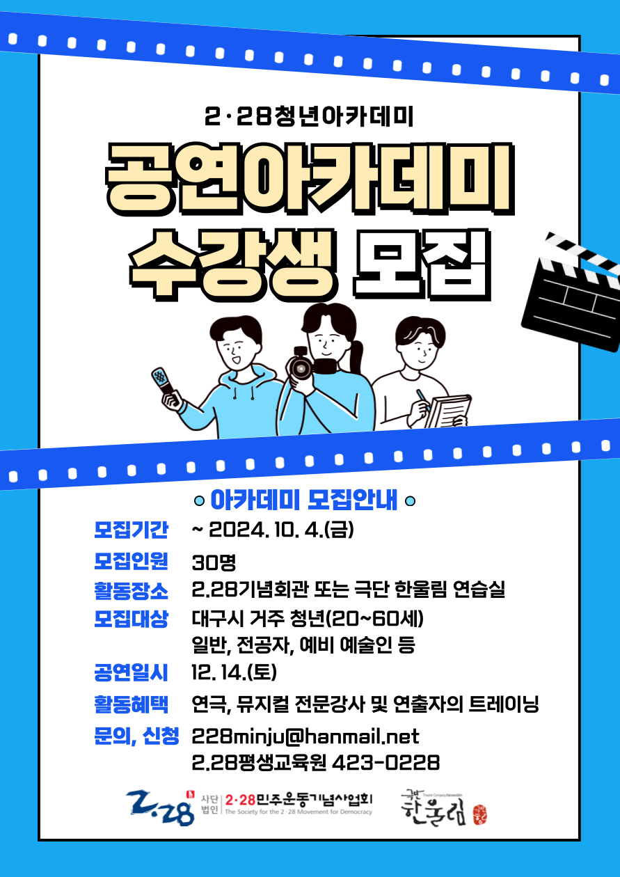 2·28청년 공연 아카데미 모집작성자 : 김민재 작성일 : 24-09-20