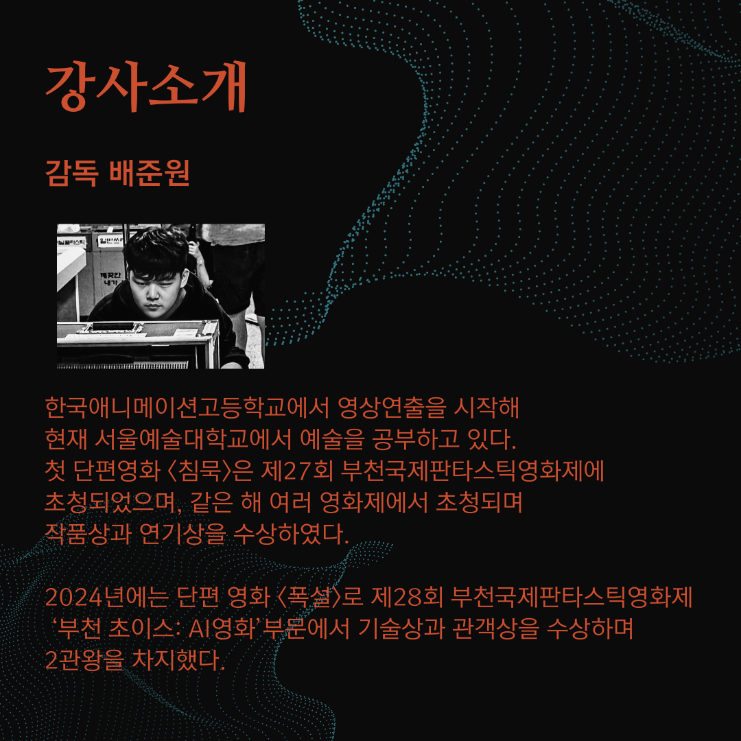 이번 비즈니스클래스 1강은 배준원 감독님과 함께 합니다. 영화 제작의 새로운 지평을 여는 기회 놓치지 마세요! 🎉