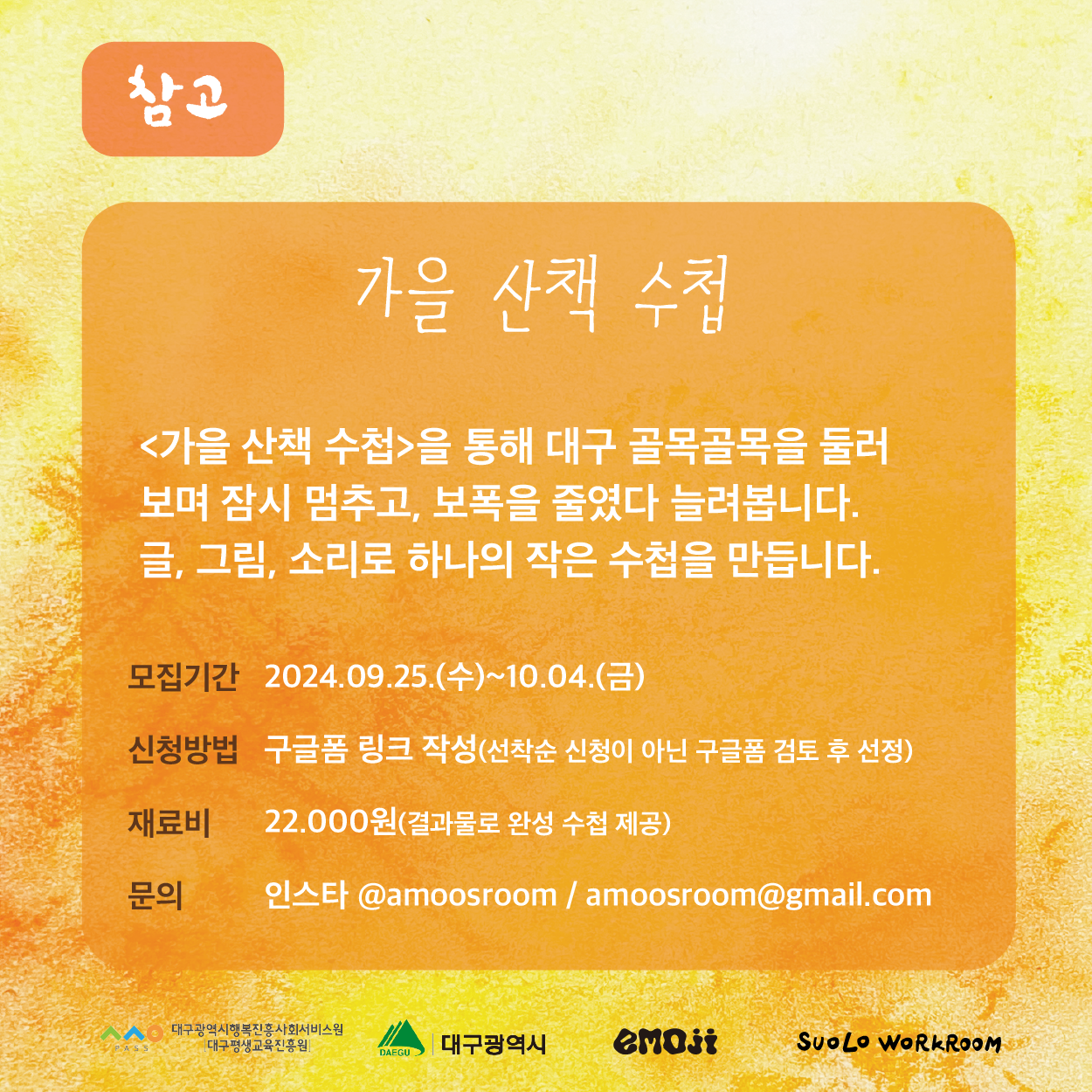 <가을 산책 수첩> 참여자 모집작성자 : 송하영 작성일 : 24-09-26