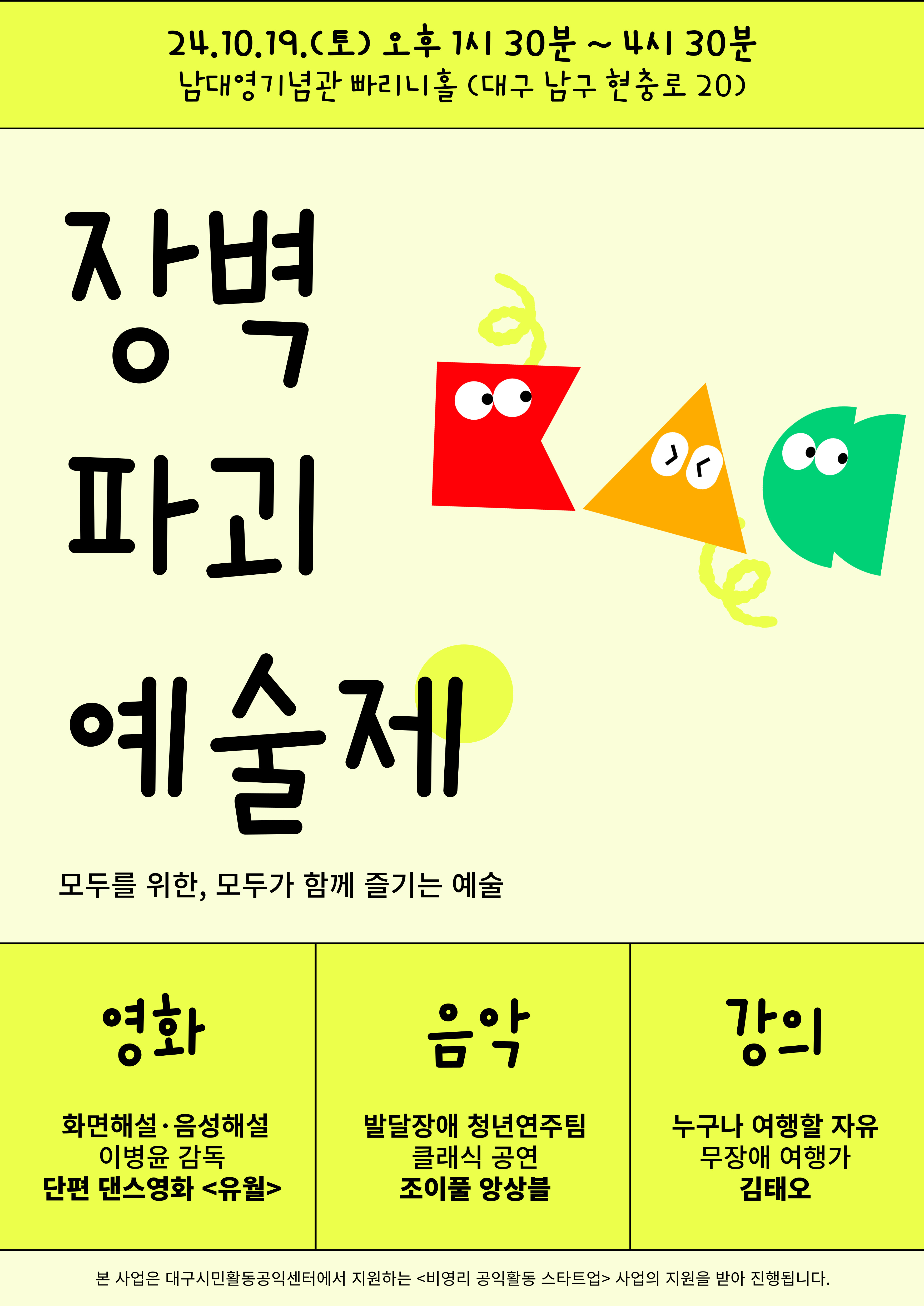 💣장애인, 비장애인 구분없이 모두가 문화수혜자로 문화를 당연하게 즐기고 이를 넘어 적극적인 주체자로 활동할 수 있길 바랍니다.