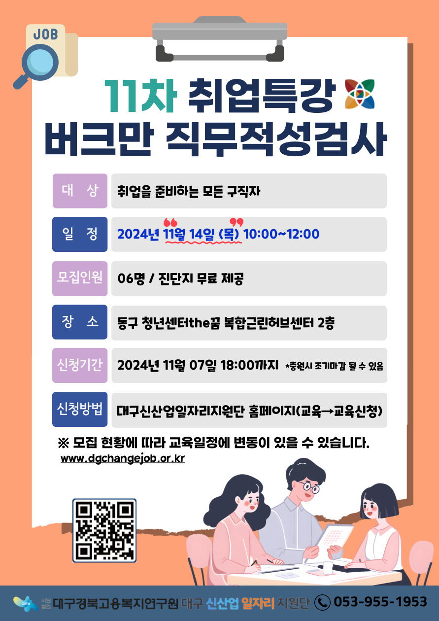 취업특강 버크만 직무적성검사 참여자 모집작성자 : 박태란 작성일 : 24-10-15