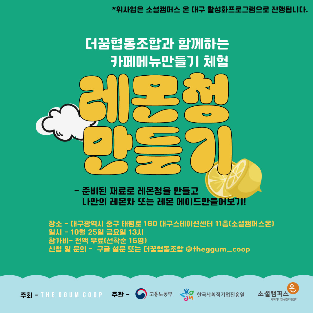 *위사업은 소셜캠퍼스 온 대구 활성화프로그램으로 진행됩니다.