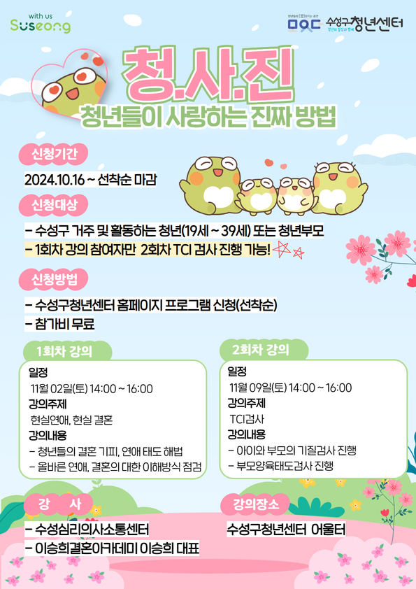 청.사.진. 청년들이 사랑하는 진짜방법 특강작성자 : 수성구청년센터 작성일 : 24-10-16