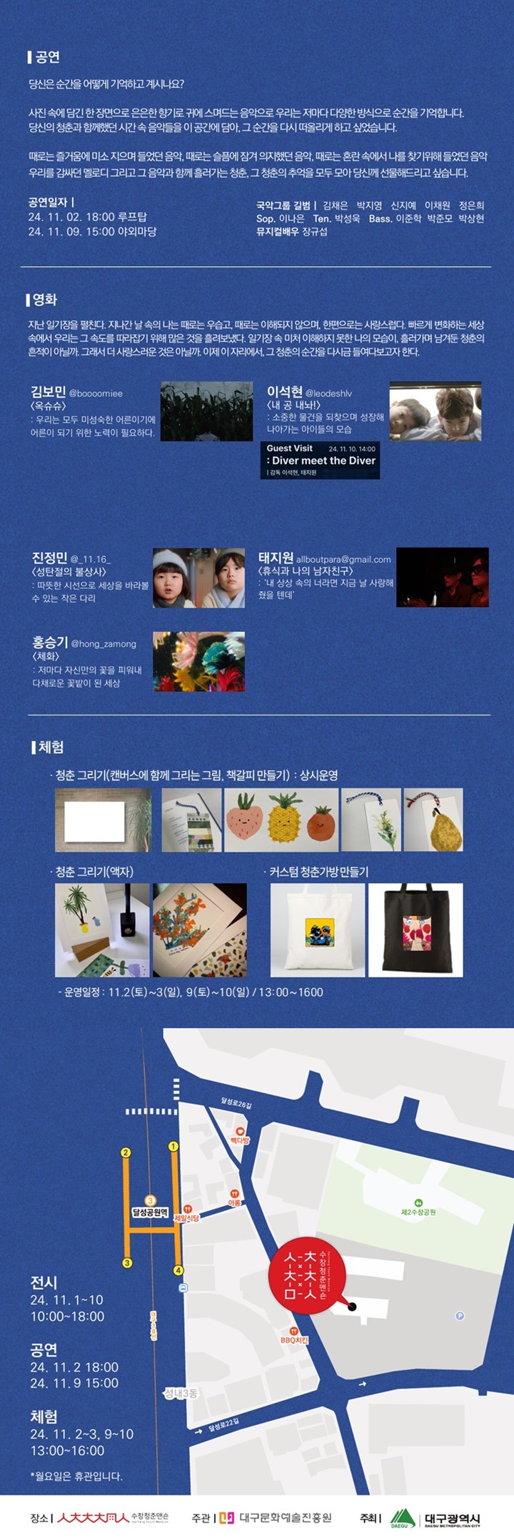 ※영화 상영 시간표 및 자세한 사항은 청춘다이브(@art.dive_diver)에서 확인할 수 있습니다.