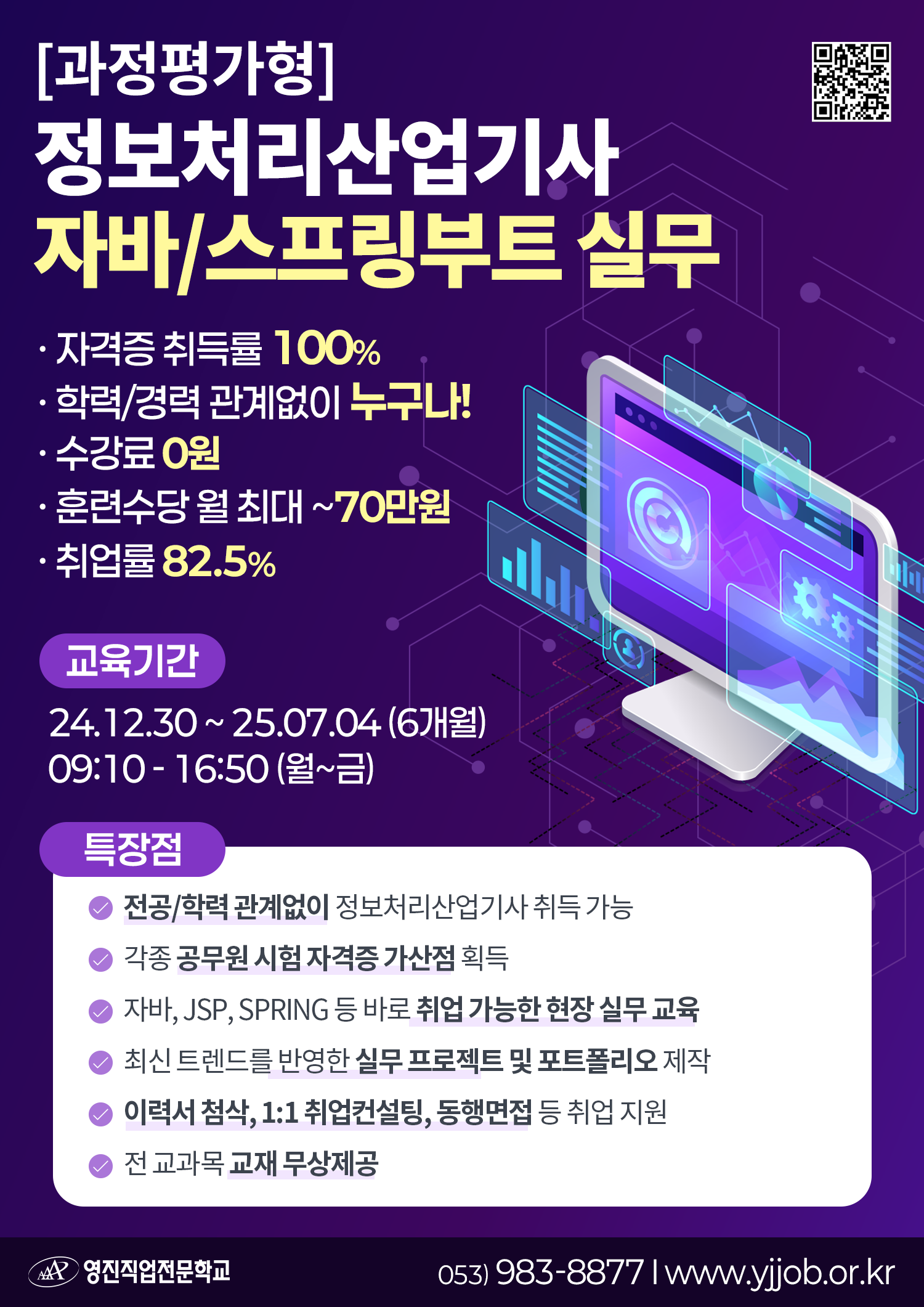 #국비무료,#정보처리,#정보처리산업기사,#웹마스터,#웹프로그램,#JAVA,#JSP,#스프링부트,#개발자,#오라클,#MySQL,#포트폴리오