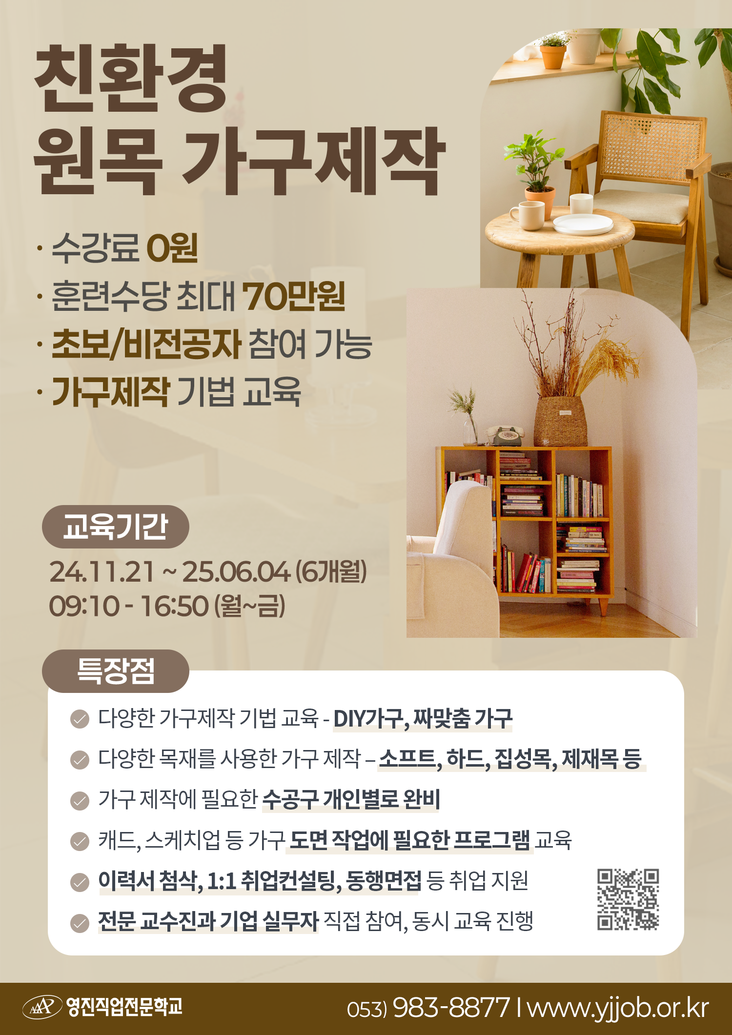 [전액국비무료] 친환경 원목 가구제작 훈련생 모집작성자 : 박서은 작성일 : 24-11-14