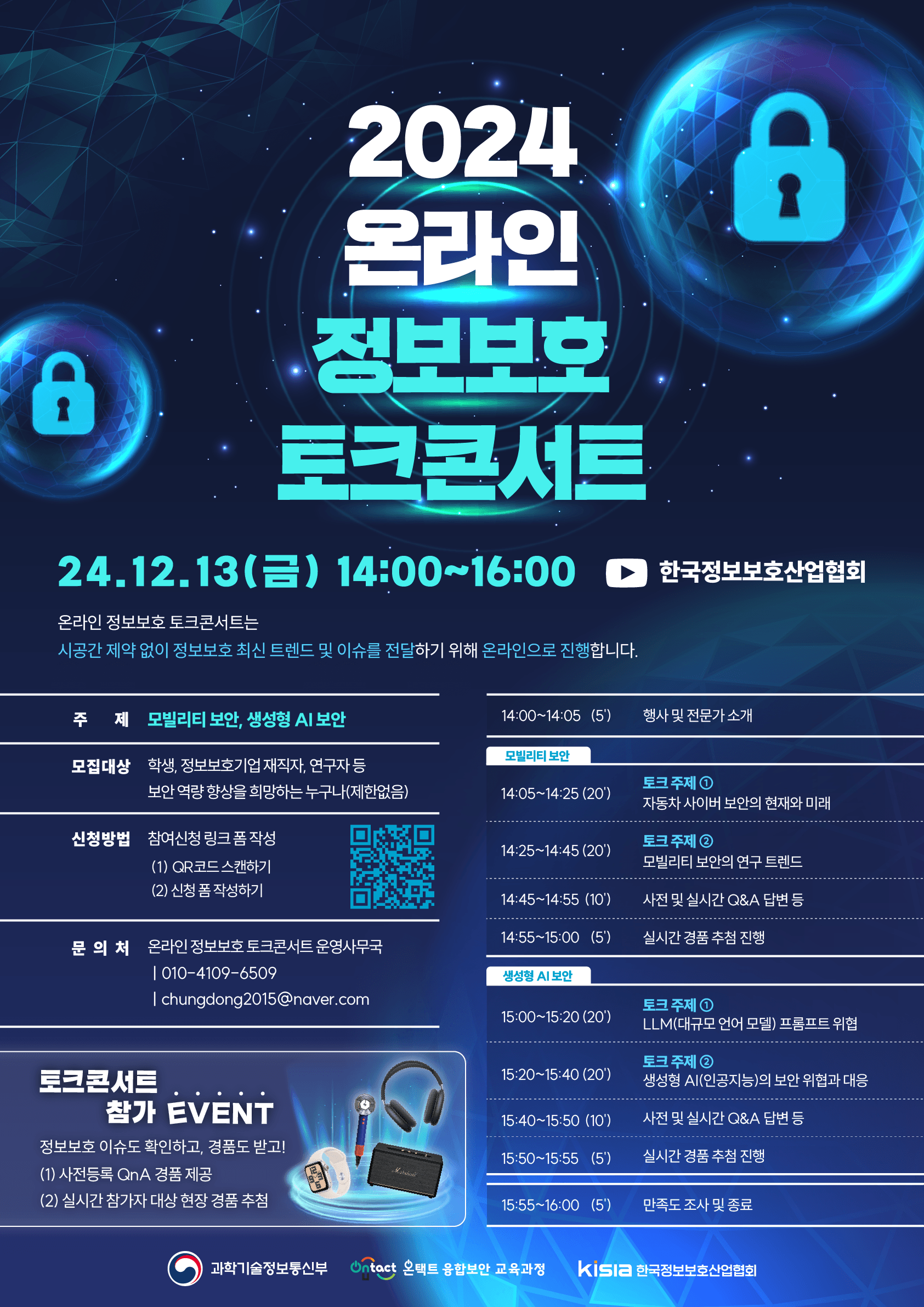 2. 일시/장소 : 2024. 12. 13. (금) 14:00 ~ 16:00 | 한국정보보호산업협회 유튜브