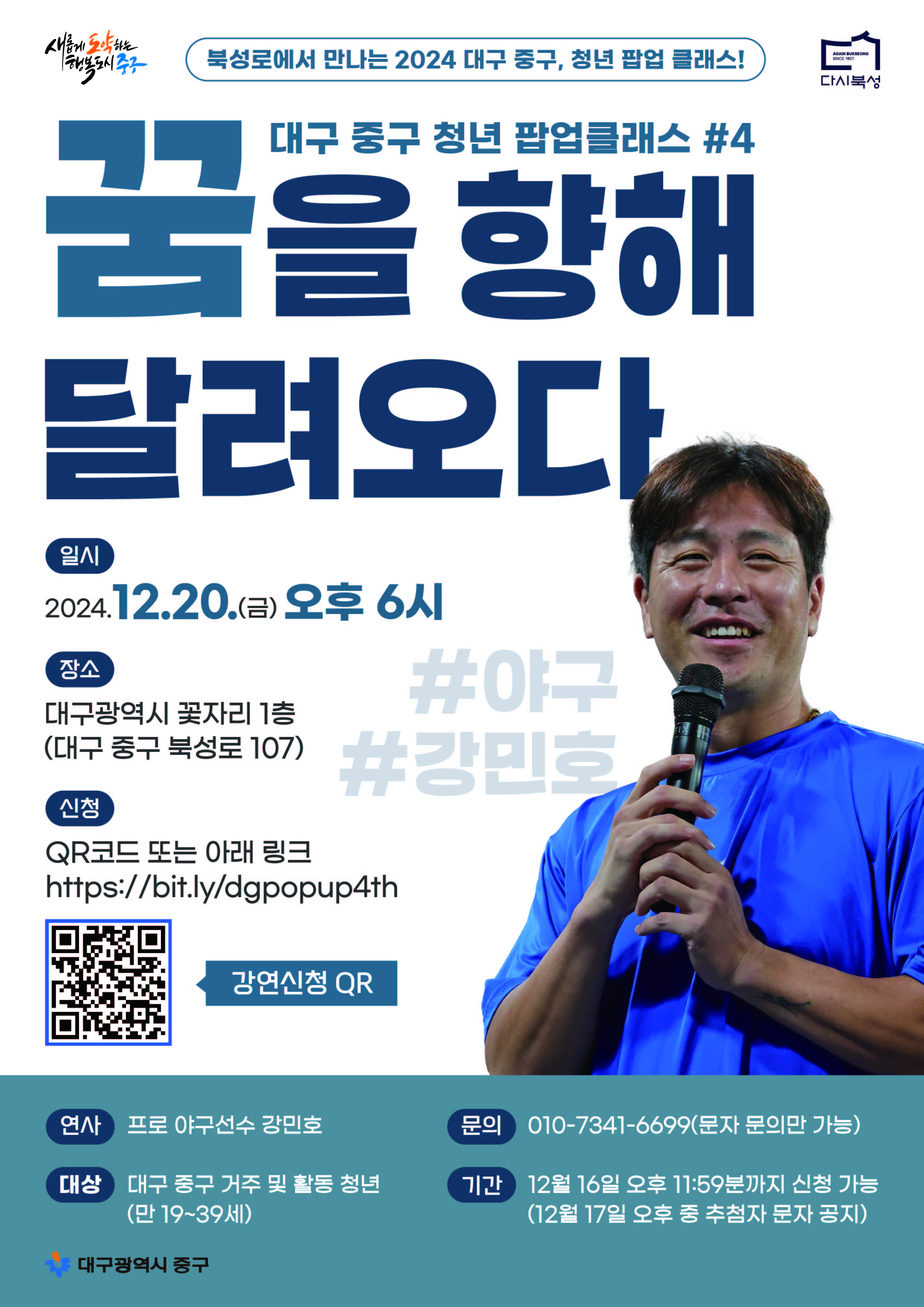 대구 중구 청년 팝업 클래스 #4 "꿈을 향해 달려오다" 야구선수 강민호 강연작성자 : 김다희 작성일 : 24-12-10