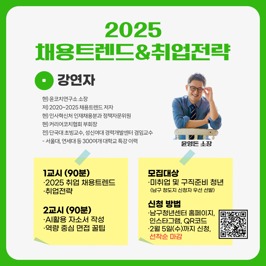 💡 <채용트렌드 2025>의 저자 윤영돈 소장님과 함께하는 취업 전략 특강!