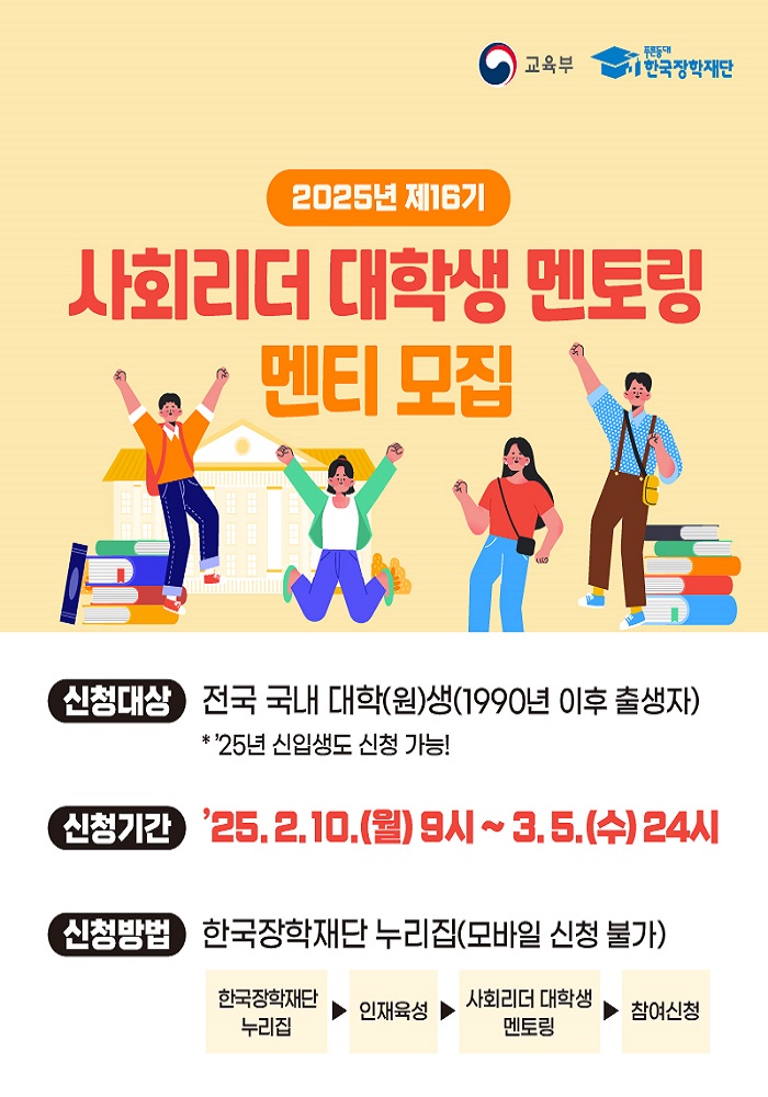 2025년 제16기 사회리더 대학생 멘토링 멘티 모집작성자 : 오현웅 작성일 : 25-02-14