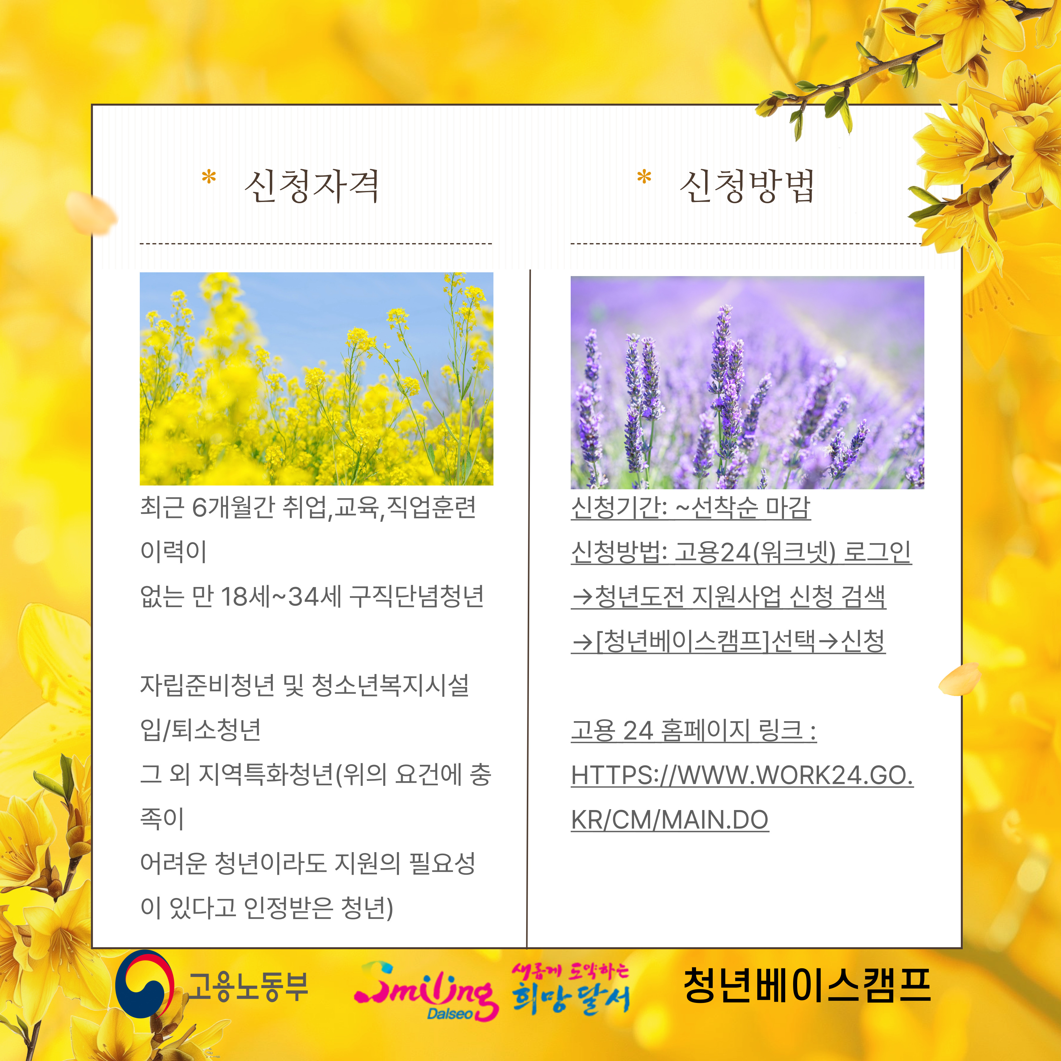 각 사업의 정보 및 신청 등 사업·프로그램 문의는 게시글 내 담당기관으로 문의 바랍니다.