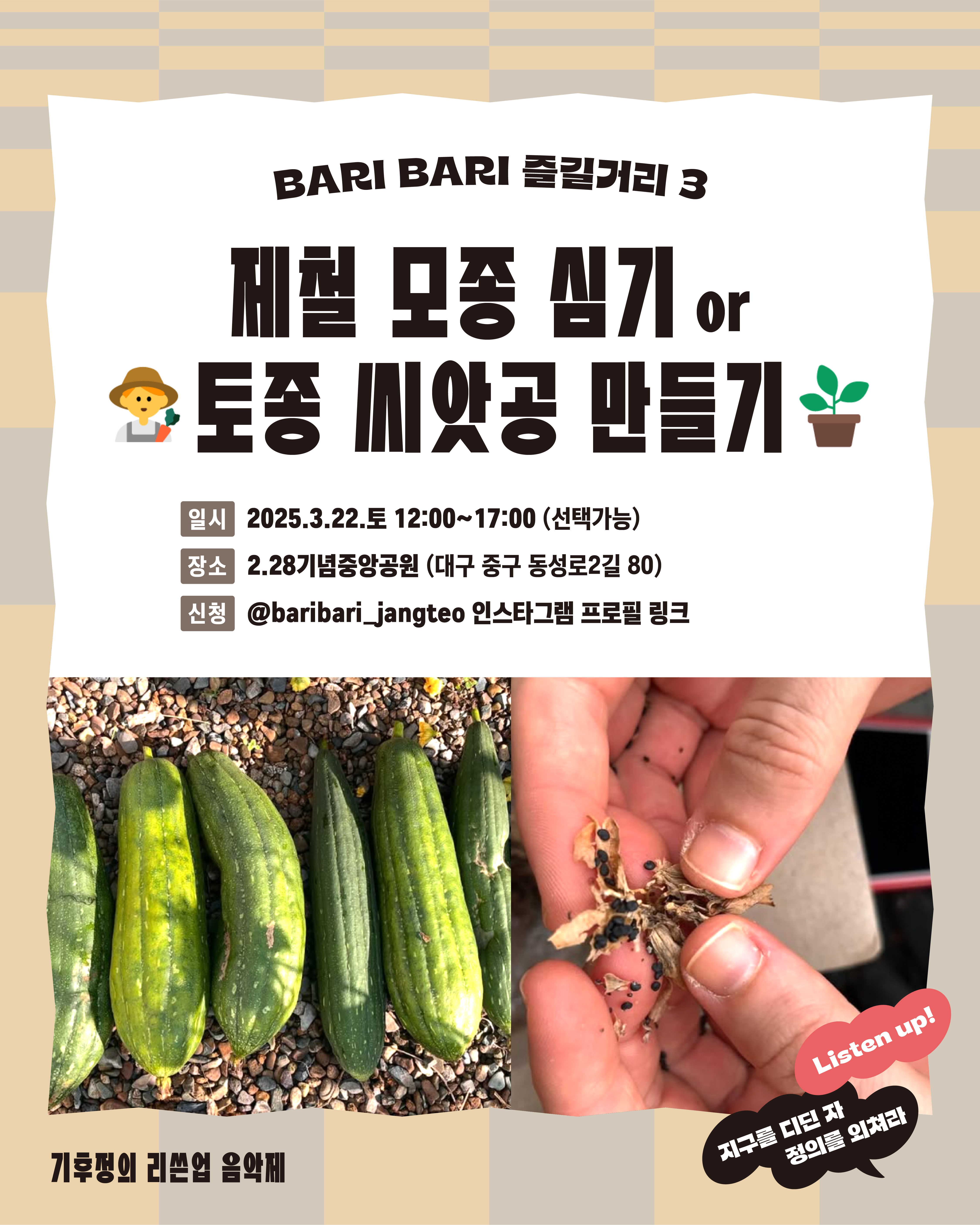 3월 쓰레기없는 로컬장터 BARI BARI 🧚♂️BARI BARI 즐길거리🧚♂️작성자 : 최송은 작성일 : 25-03-11