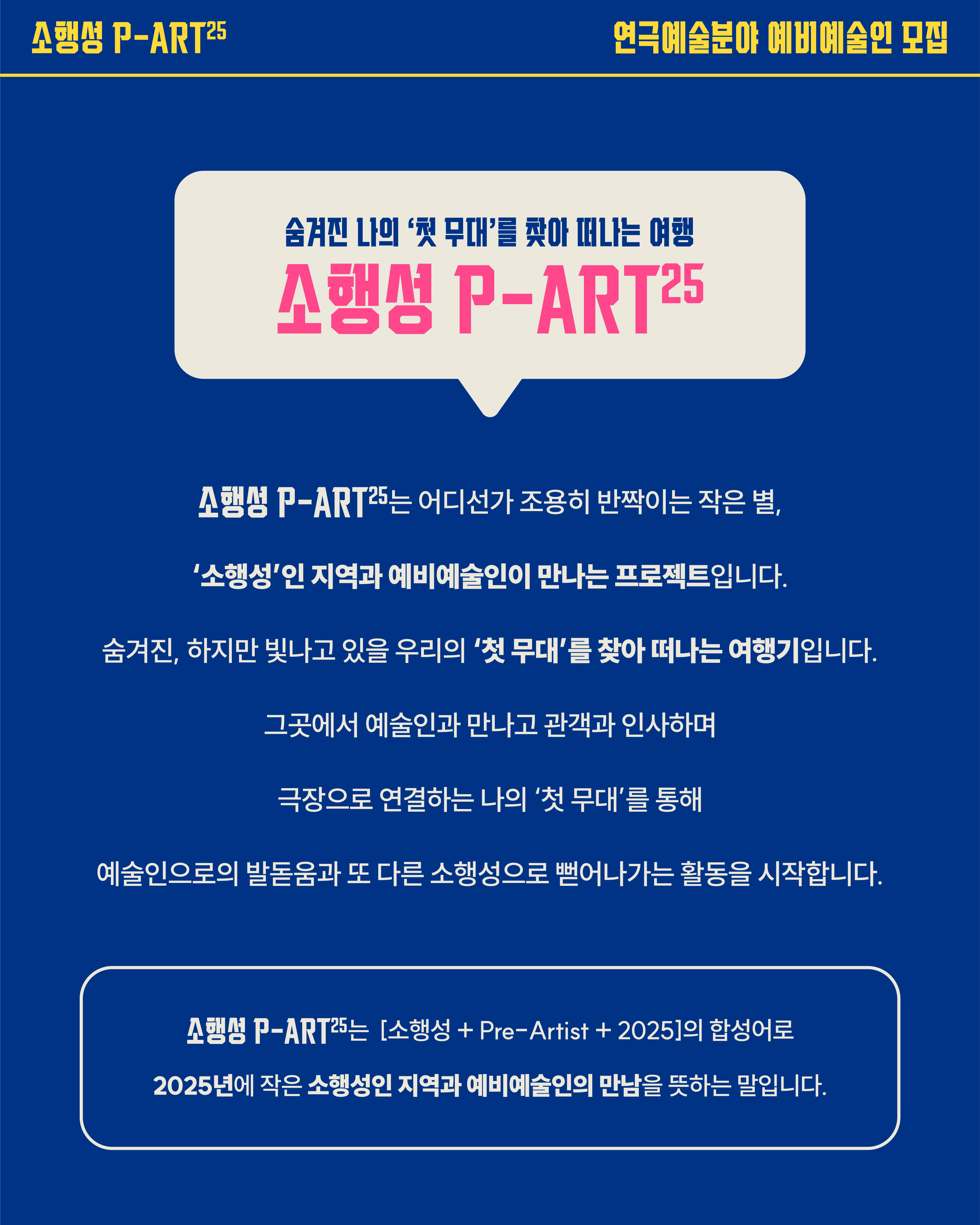 소행성(지역) + Pre-Artist(예비예술인) + 2025의 합성어로