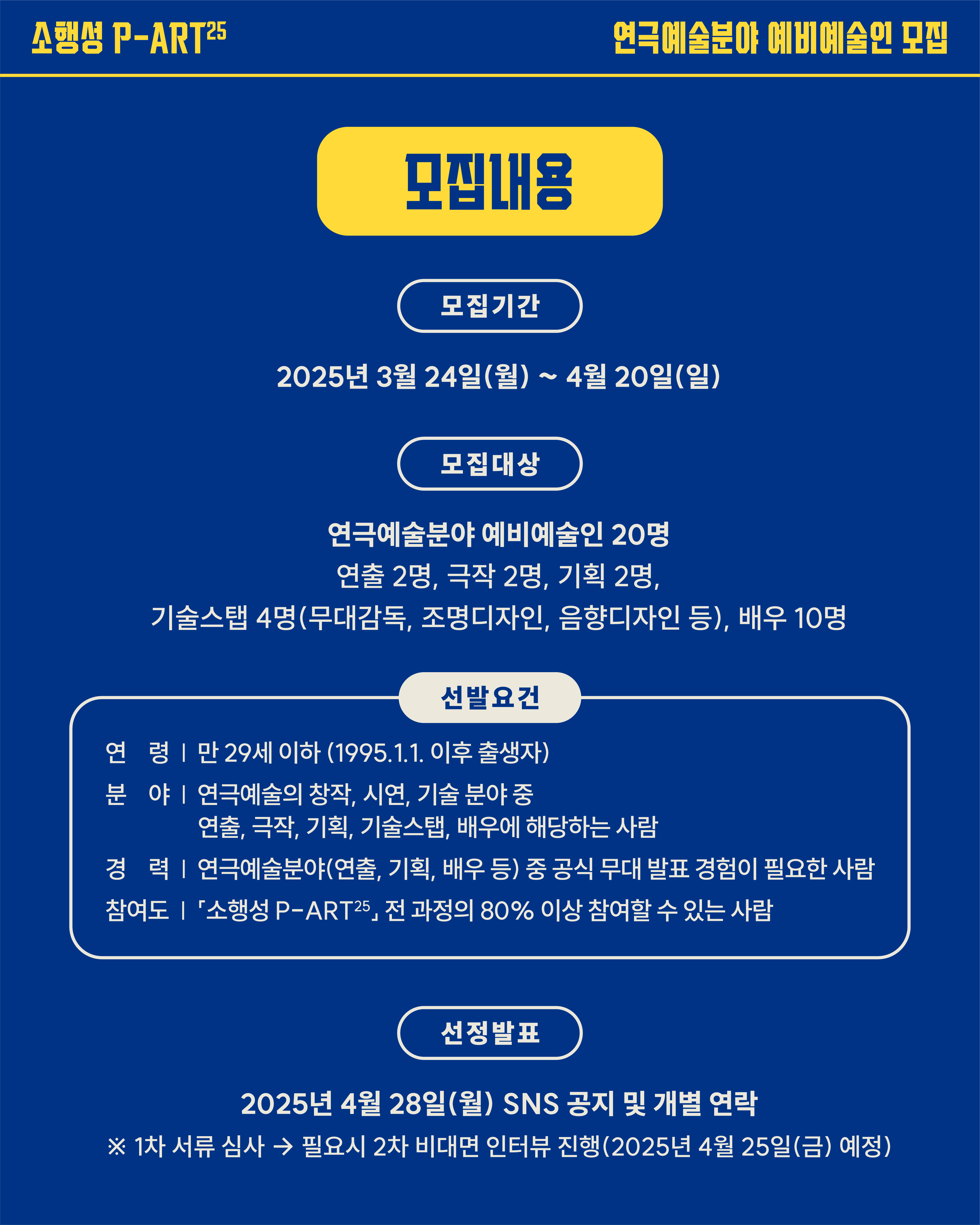 - 2025. 4. 28(월) 선정발표 *SNS 공지 및 개별 연락 예정