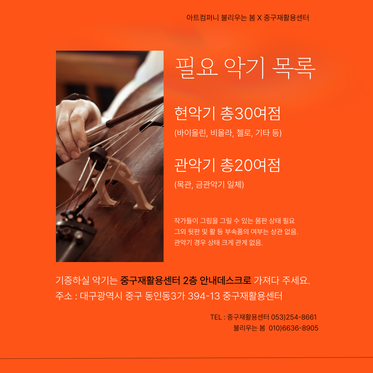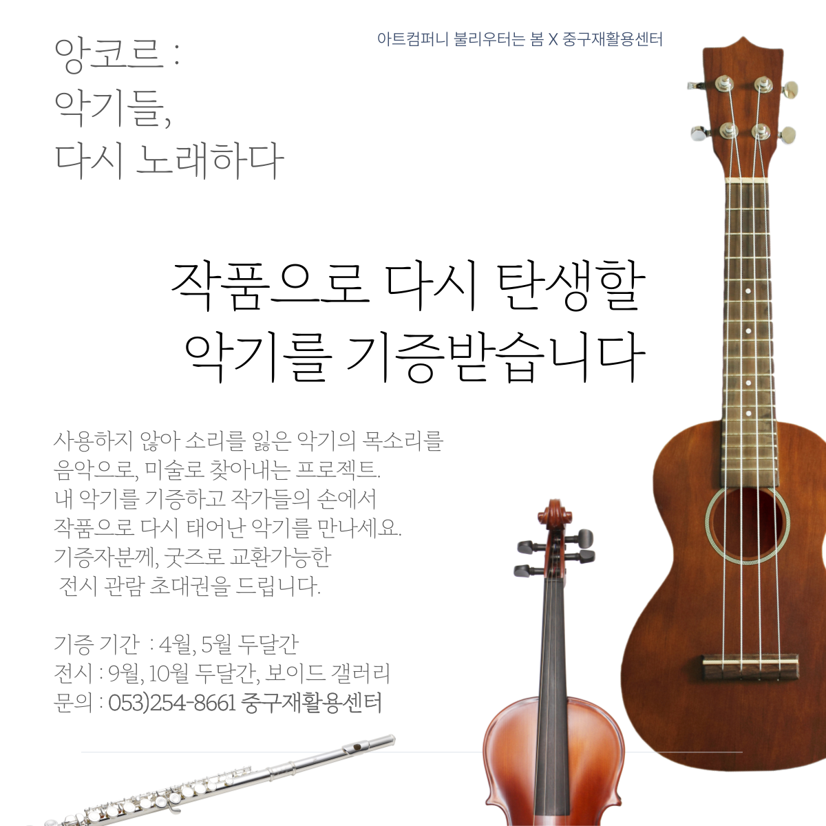 작품으로 탄생할 악기를 기증받습니다