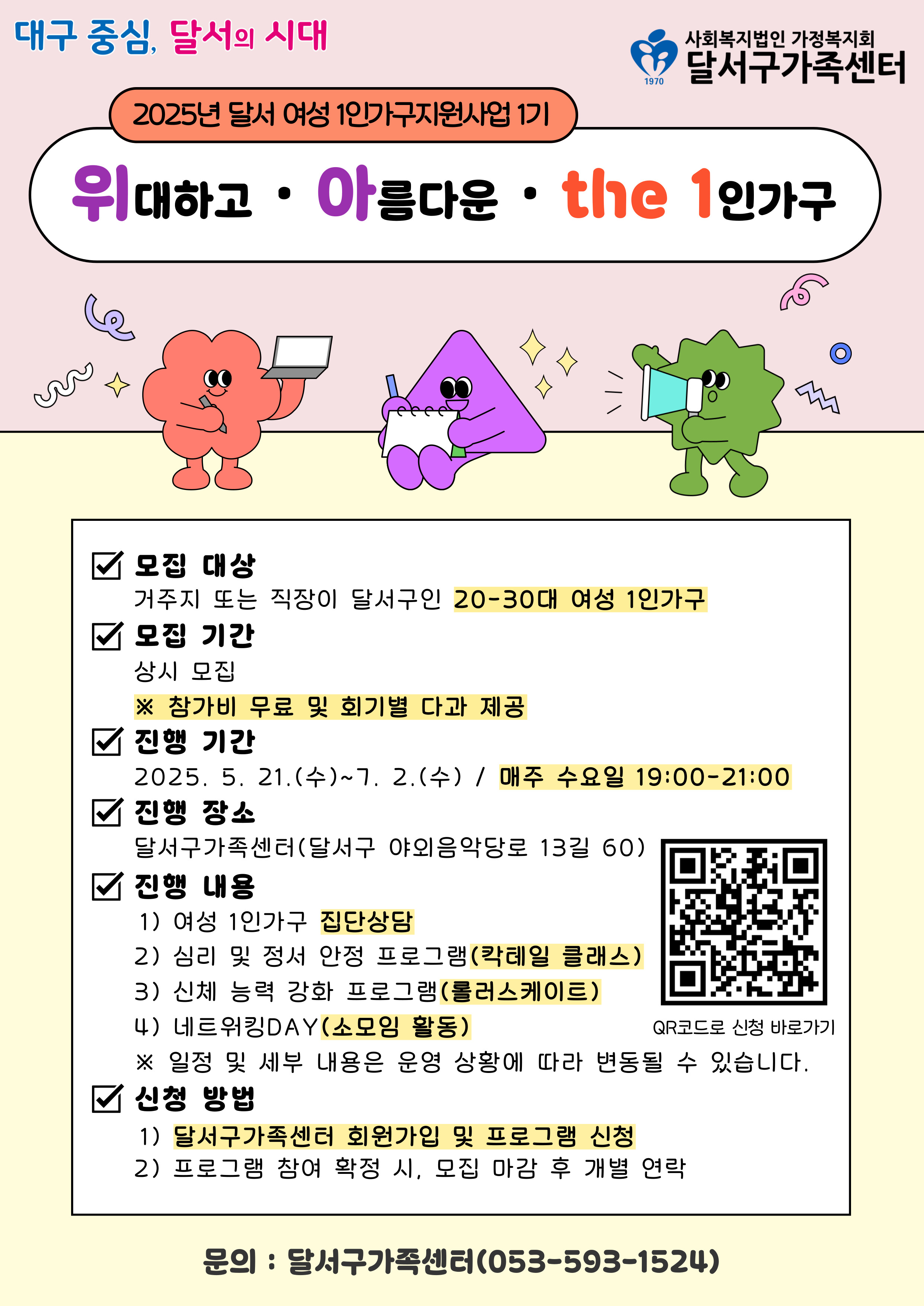 [2025년 달서여성1인가구지원사업 '위·아·the 1' 1기 참여자 모집]