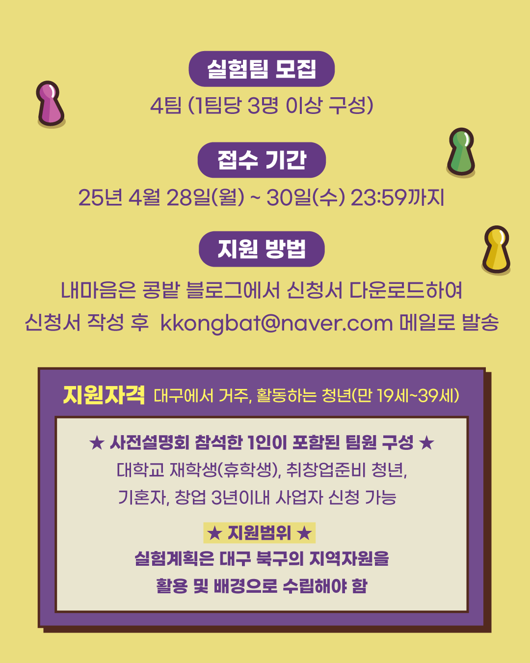 ※ 실험팀으로 지원하려면 위에 안내드린 사전설명회에 구성원 중 1명이 필참해야 함