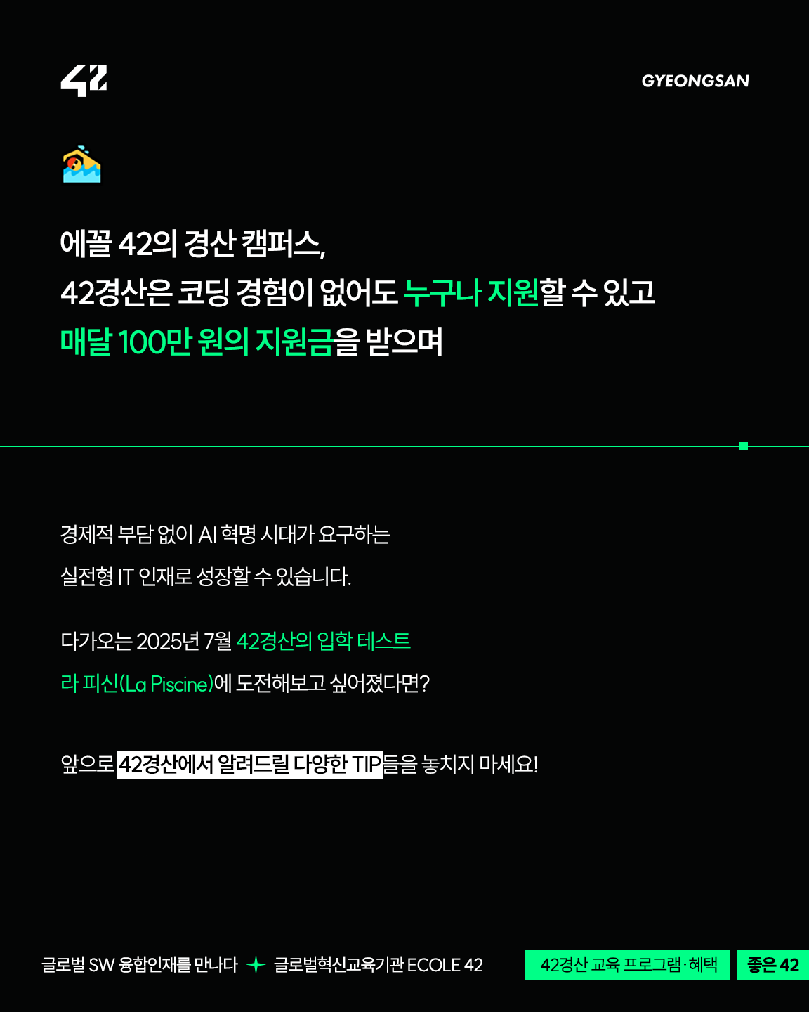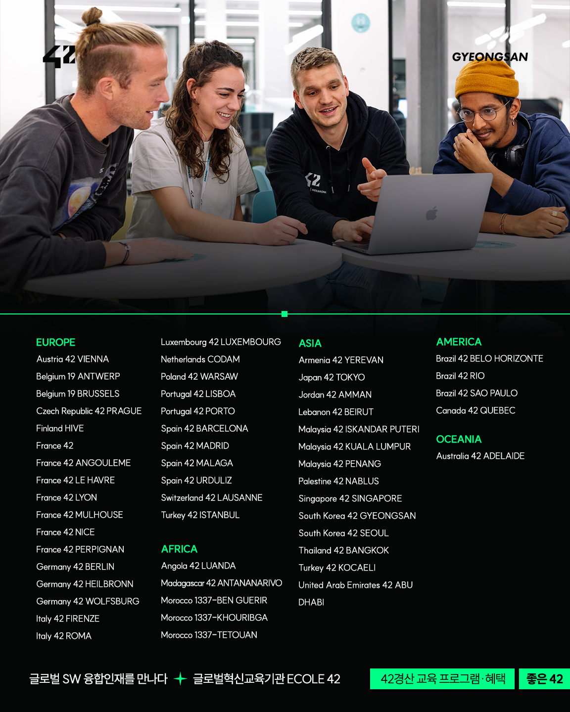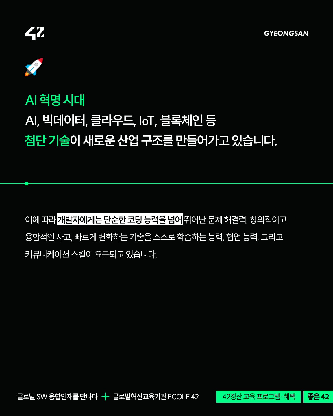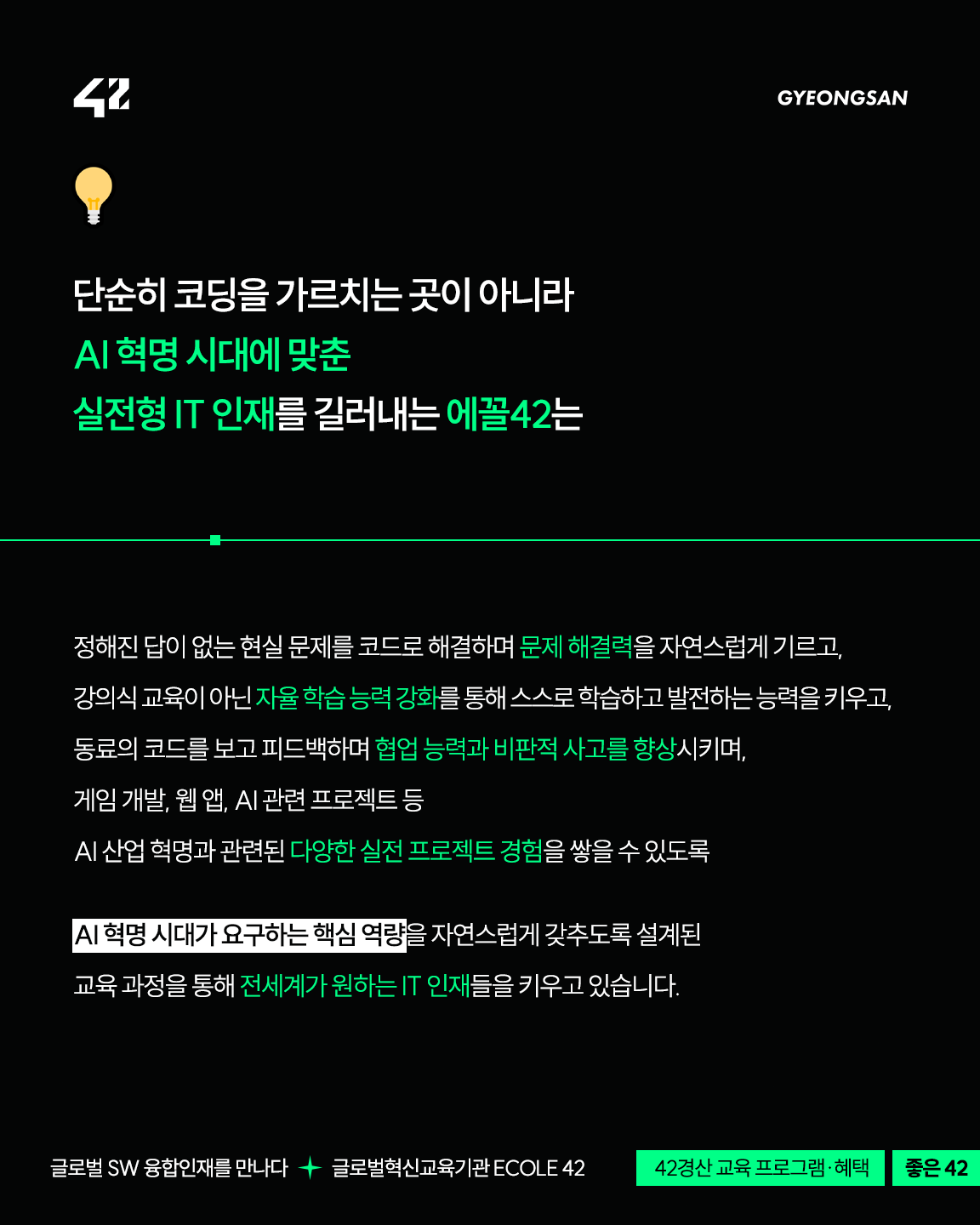 AI 혁명시대 소프트웨어 교육을 선도는 글로벌 '42경산' 교육생 모집작성자 : 김유정 작성일 : 25-04-07