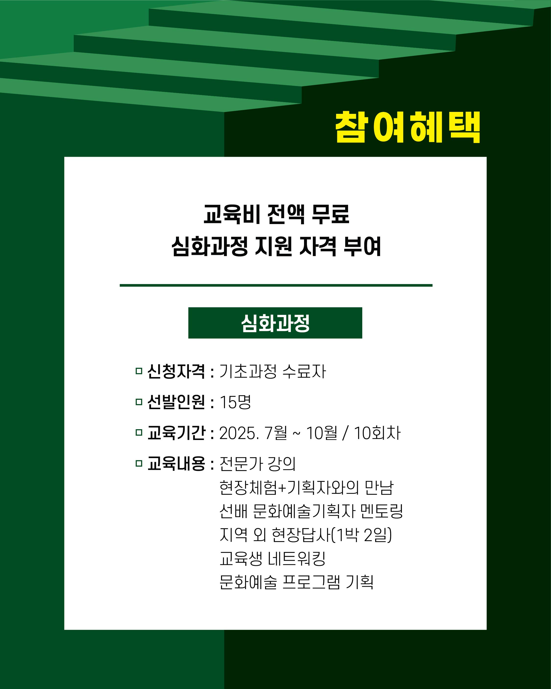 2025 차세대 문화예술기획자 양성과정 교육생 모집작성자 : 이진희 작성일 : 25-04-16