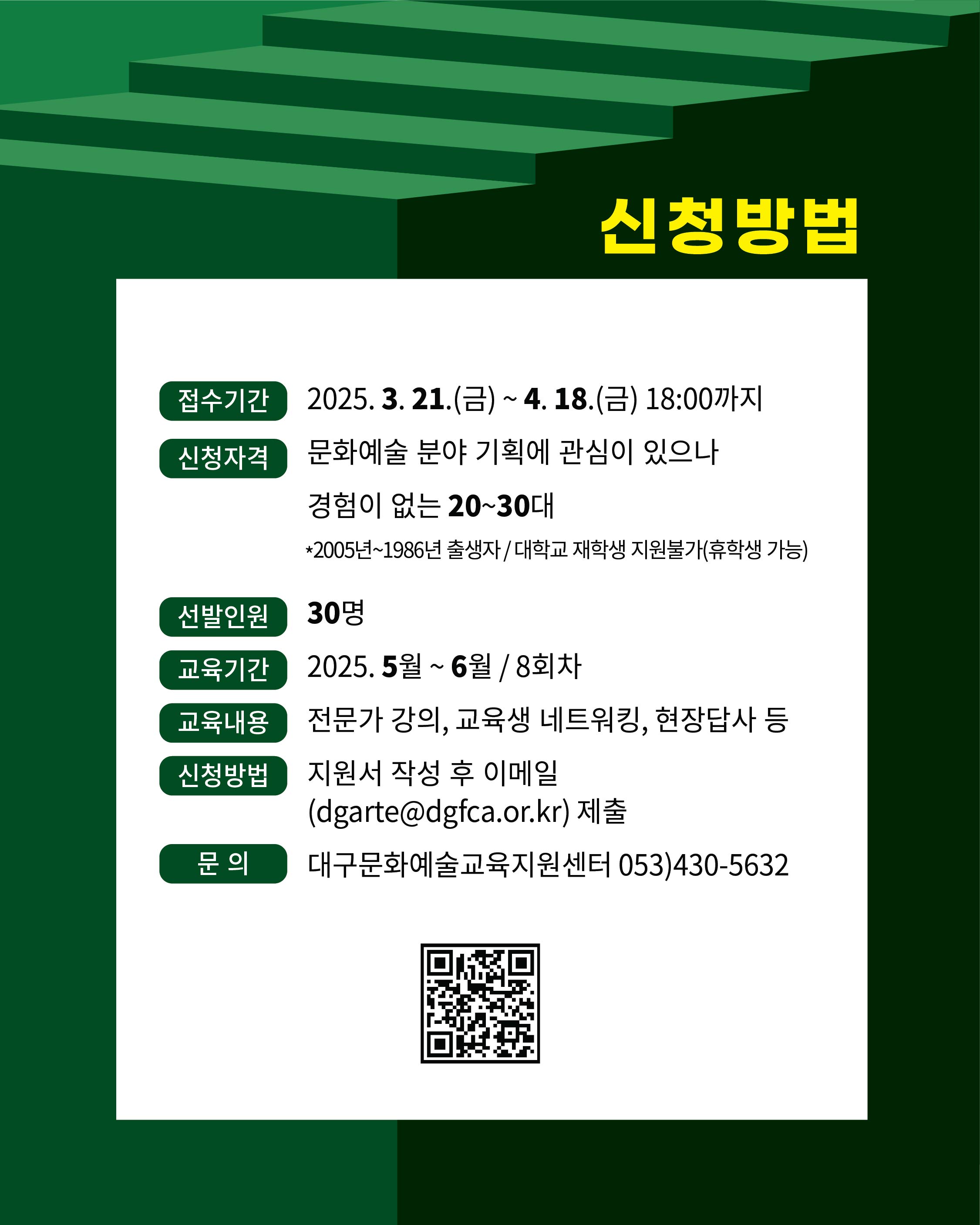 ✔️신청방법 : 지원서 작성 후 이메일(dgarte@dgfca.or.kr) 제출
