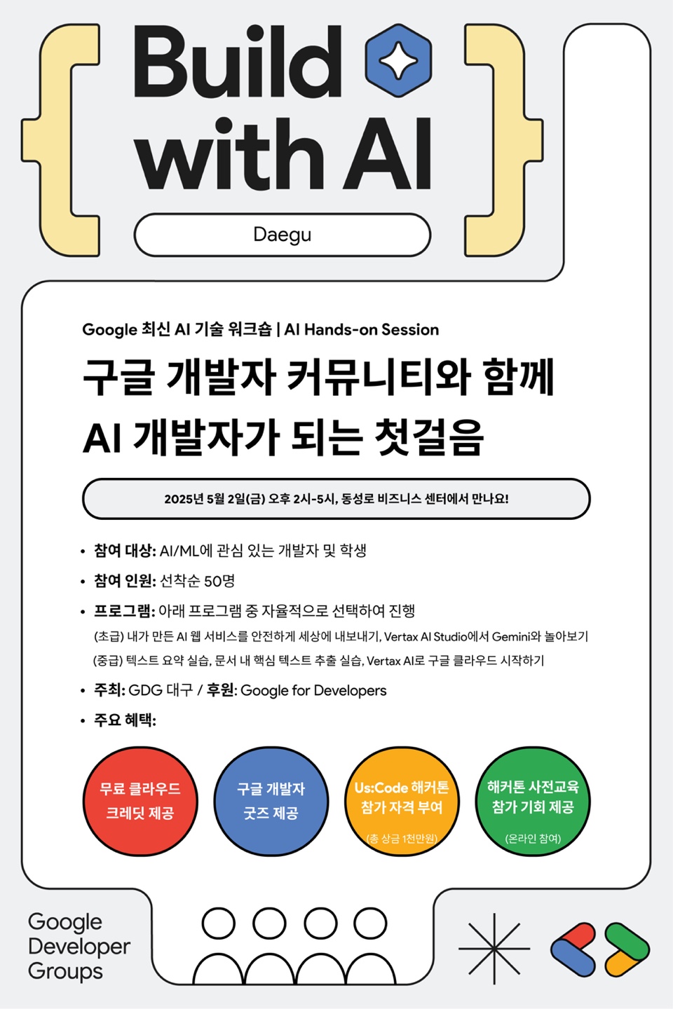지금, AI 개발자의 첫걸음, GDG 대구 Build with AI 2025에서 시작하세요! 🙌