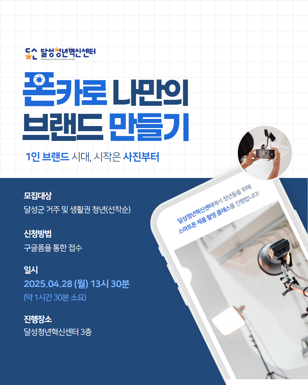 [원데이 클래스] 폰카로 나만의 브랜드 만들기(스마트폰 촬영)작성자 : 이주의 작성일 : 25-04-21