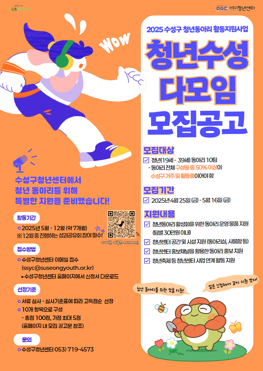 2025 수성구 청년동아리 활동지원사업 <청년수성다모임> 모집작성자 : 수성구청년센터 작성일 : 25-04-25