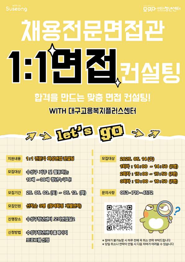 온투유 화상 1:1 면접 컨설팅 (with 대구고용복지플러스센터)작성자 : 수성구청년센터 작성일 : 25-05-03