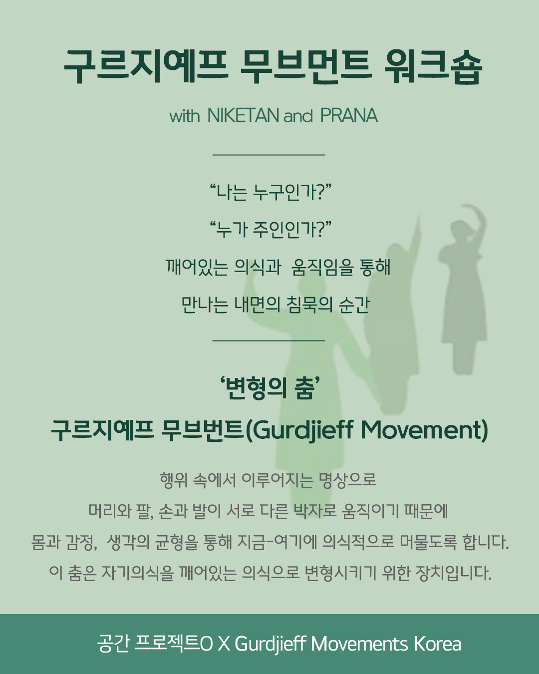 공간프로젝트O에서 G.M.K(구르지예프 무브먼트 코리아)와 함께 구르지예프 무브먼트 워크 숍을 준비하였습니다!