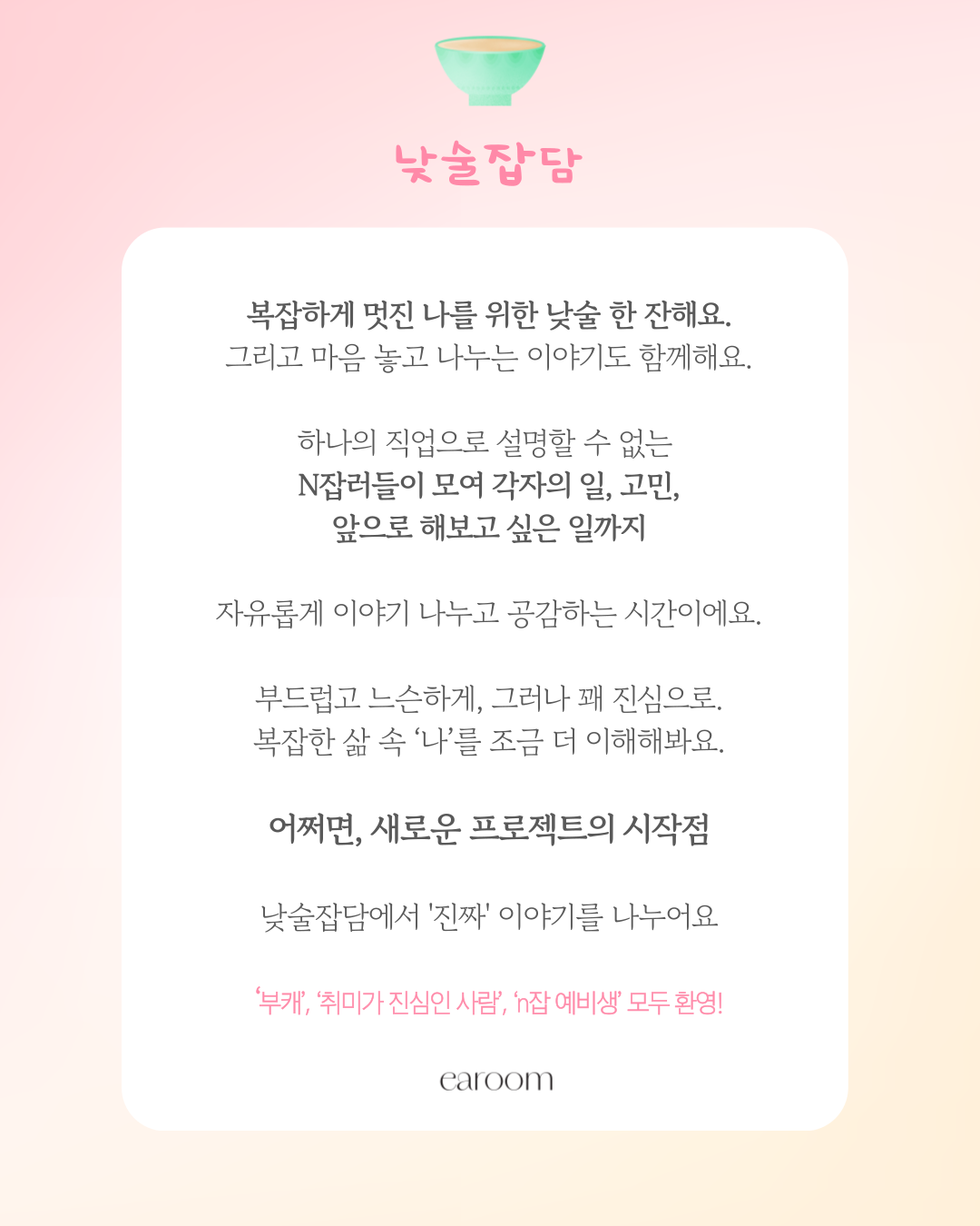 "N잡러들의 느슨하지만 진한 네트워킹 : 낮술잡담"