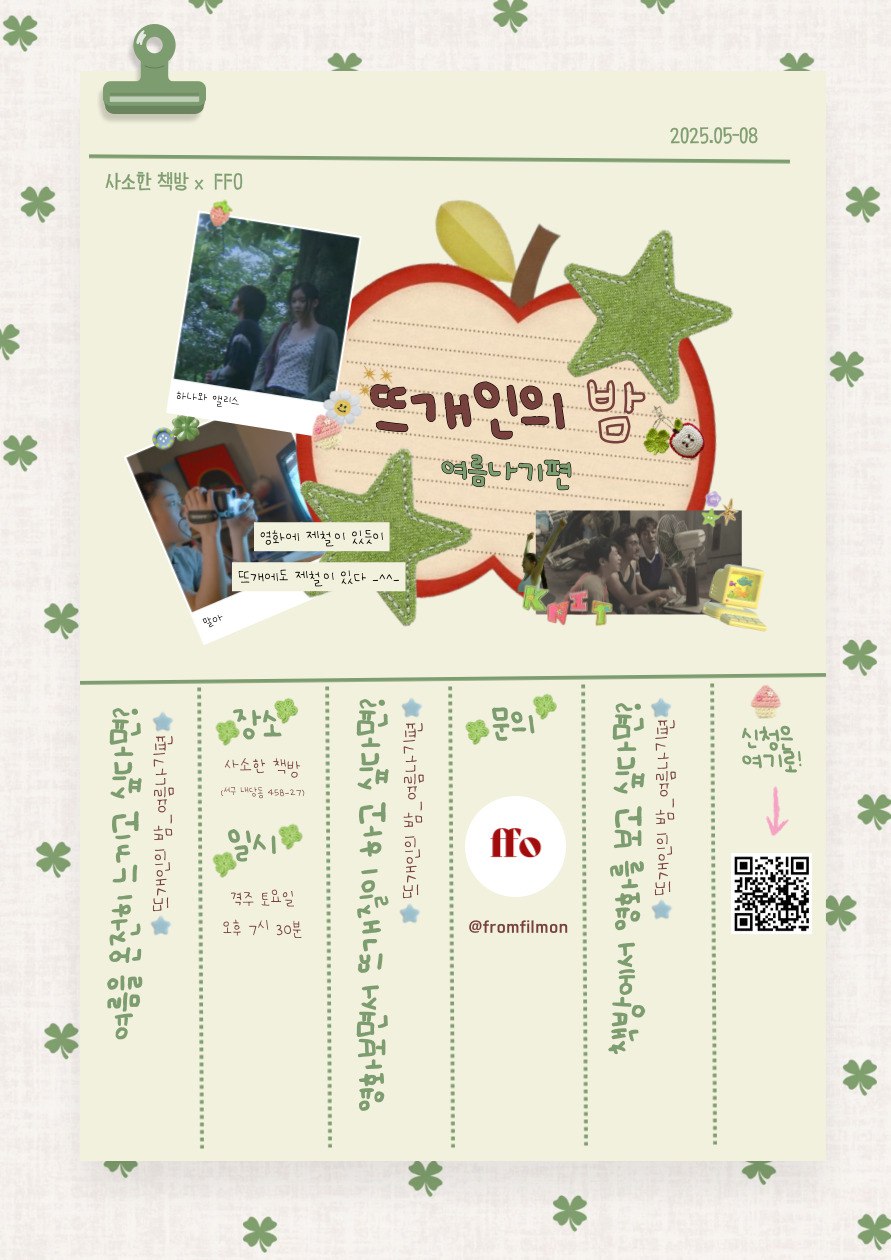 - 영화 상영과 수다 자리까지 모두 참석이 가능하신 분만 신청 부탁드립니다.