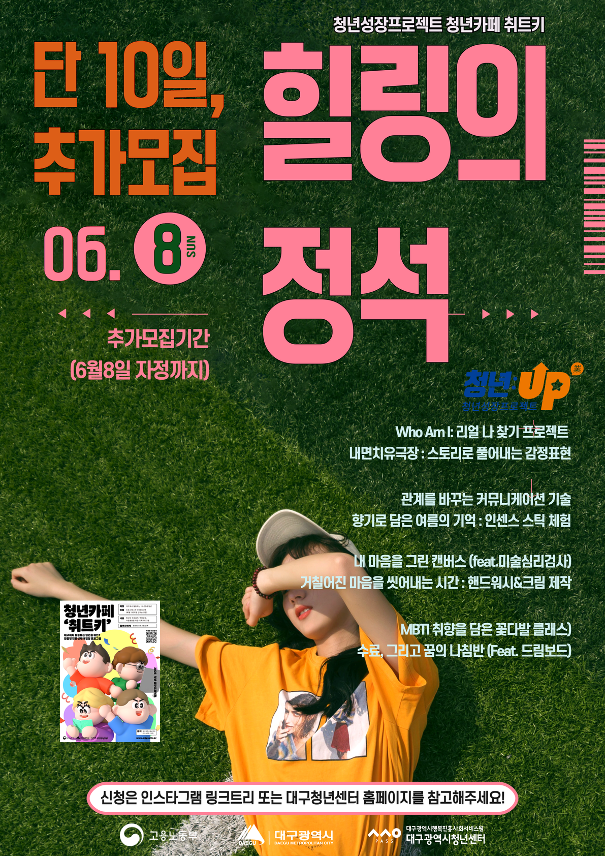 2025 청년성장프로젝트 청년카페 '취트키' 6월 프로그램(힐링의정석) 참여자 추가 모집작성자 : 대구청년센터 작성일 : 25-05-29 대구광역시청년센터