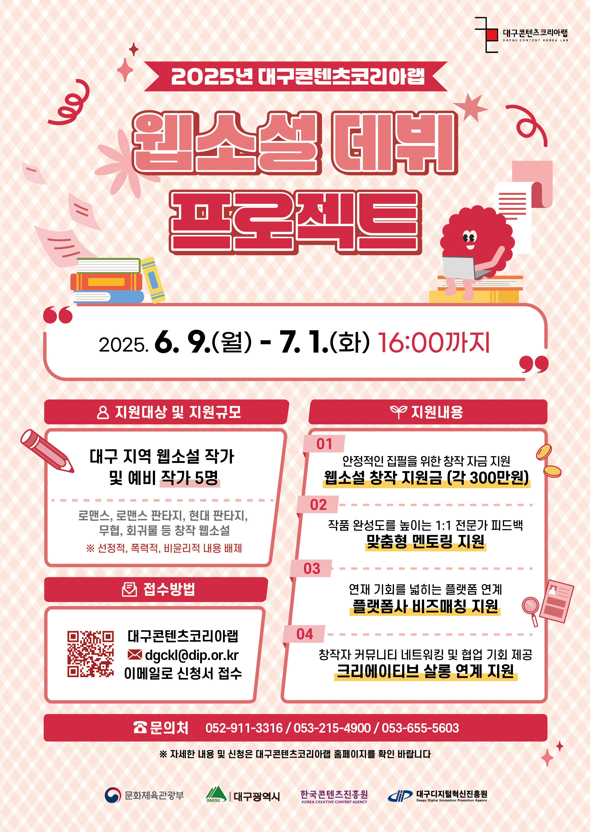 2025년 대구콘텐츠코리아랩《웹소설 데뷔 프로젝트》참가자 모집작성자 : 김다영 작성일 : 25-06-16