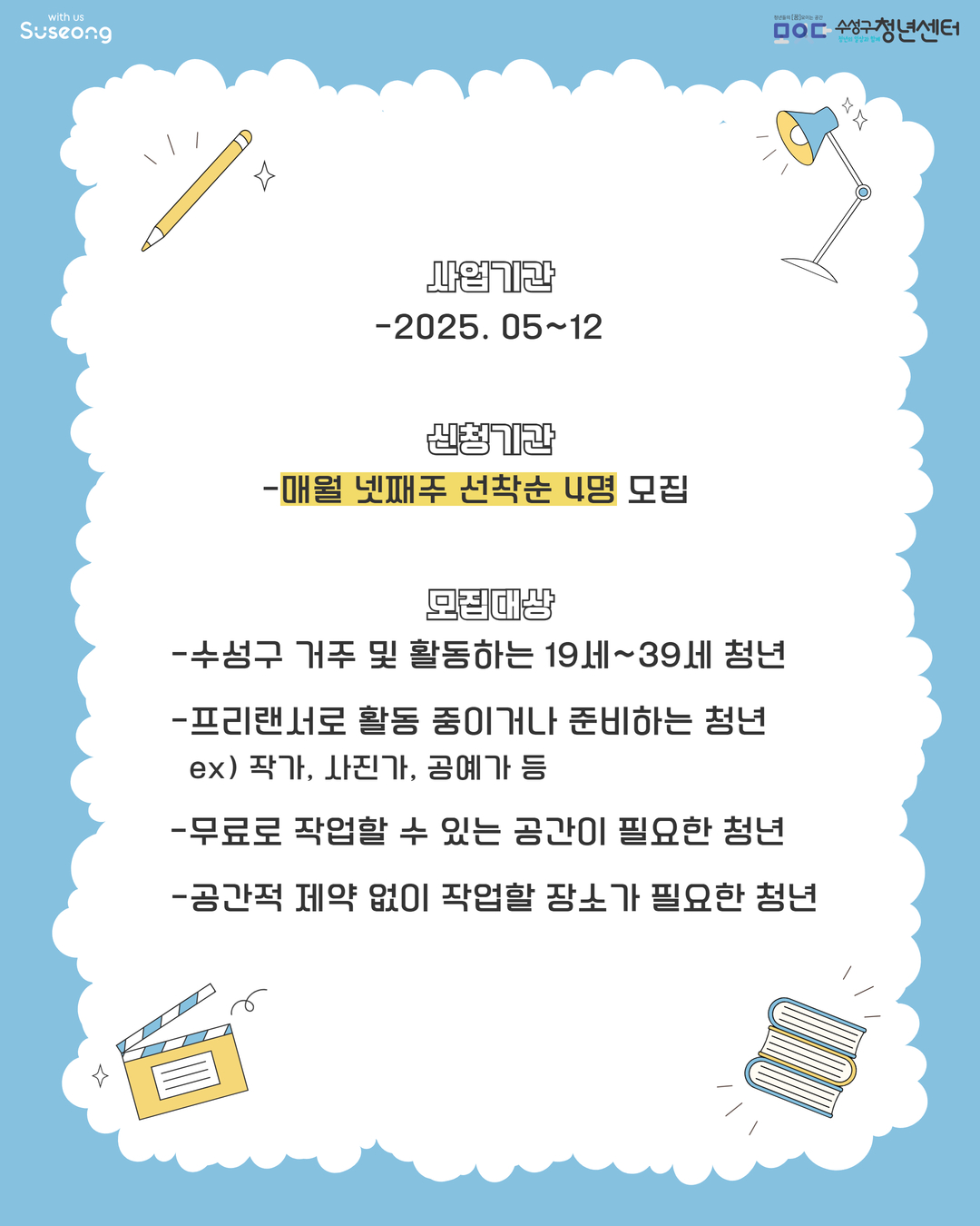 2025 수성구청년센터 <청년프리랜서> 자립지원실 7월 참여자 모집작성자 : 수성구청년센터 작성일 : 25-06-27