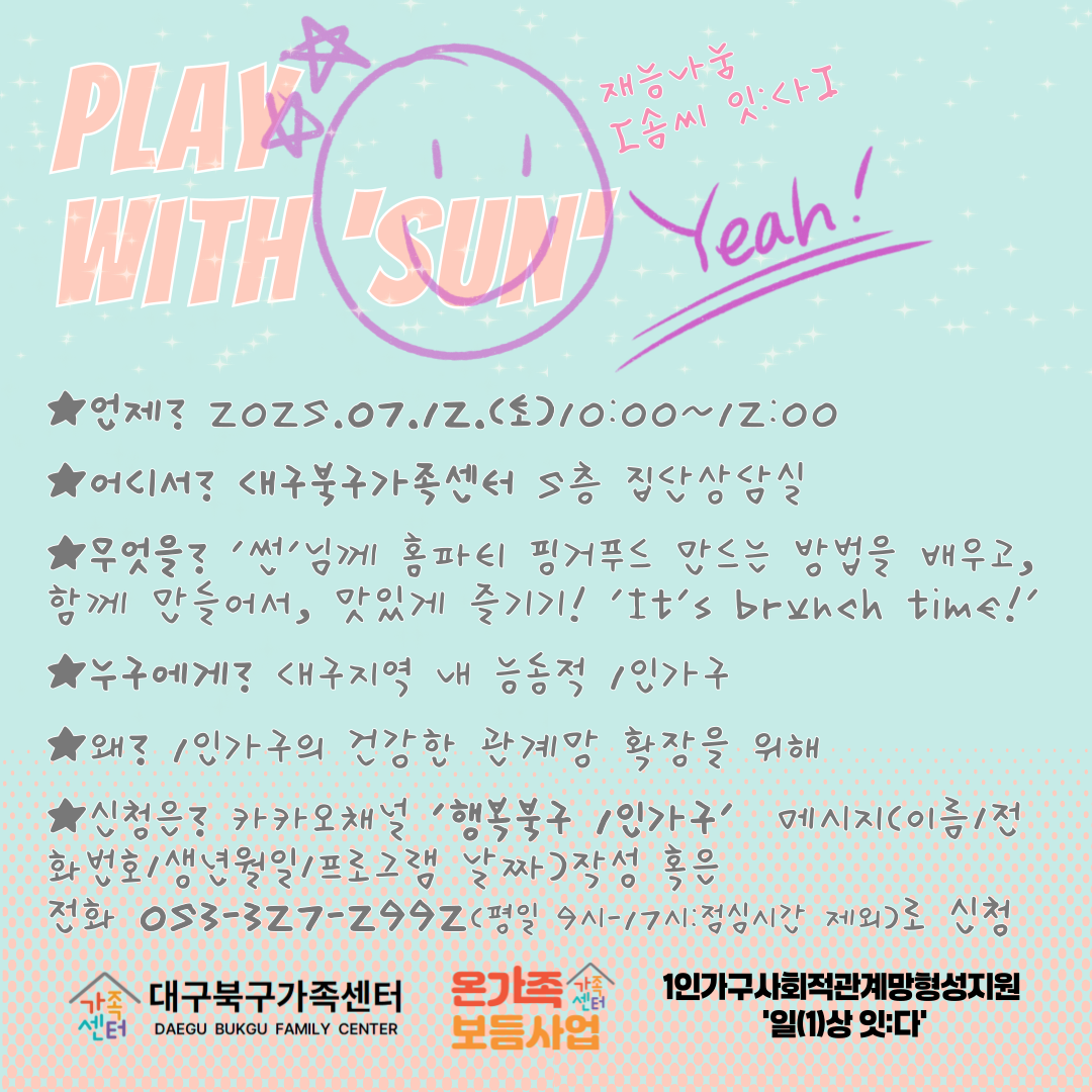 [대구북구가족센터] 온가족보듬사업 1인가구 사회적관계망 형성지원 '일(1)상 잇:다'