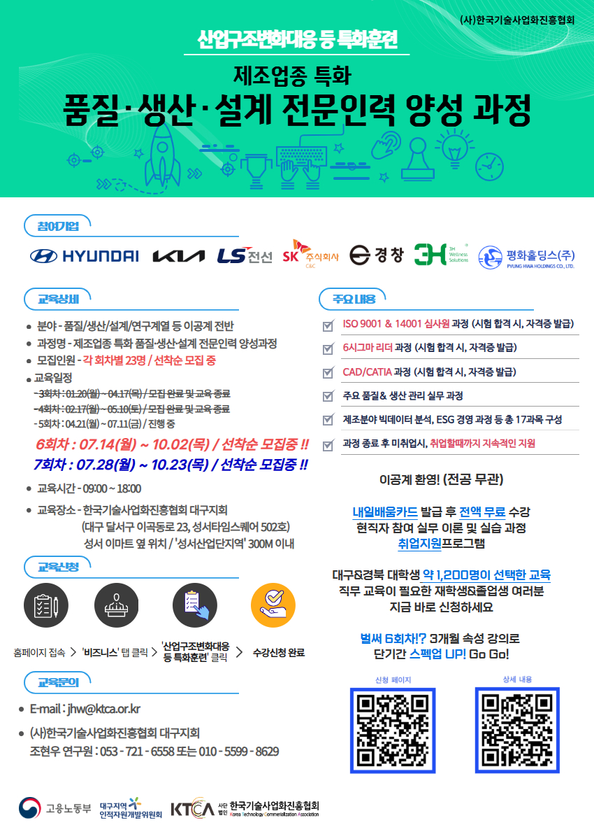 [모집] 품질·생산·설계 전문인력 양성 과정 6, 7회차 [취업지원프로그램]작성자 : 조현우 작성일 : 25-07-08