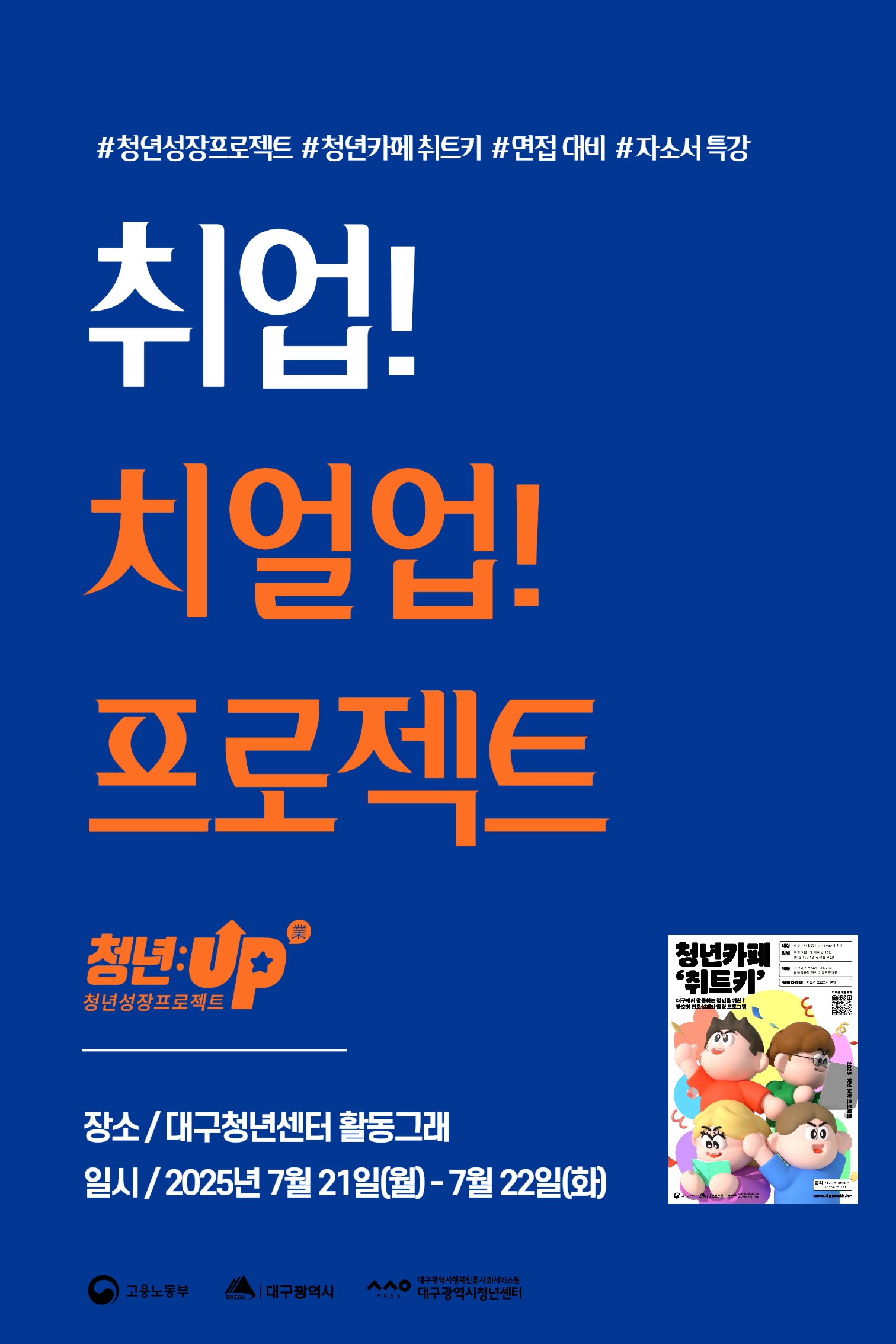 2025 청년성장프로젝트 청년카페 '취트키' 취업역랑강화 프로그램 참여자 모집작성자 : 대구청년센터 작성일 : 25-07-11 대구광역시청년센터