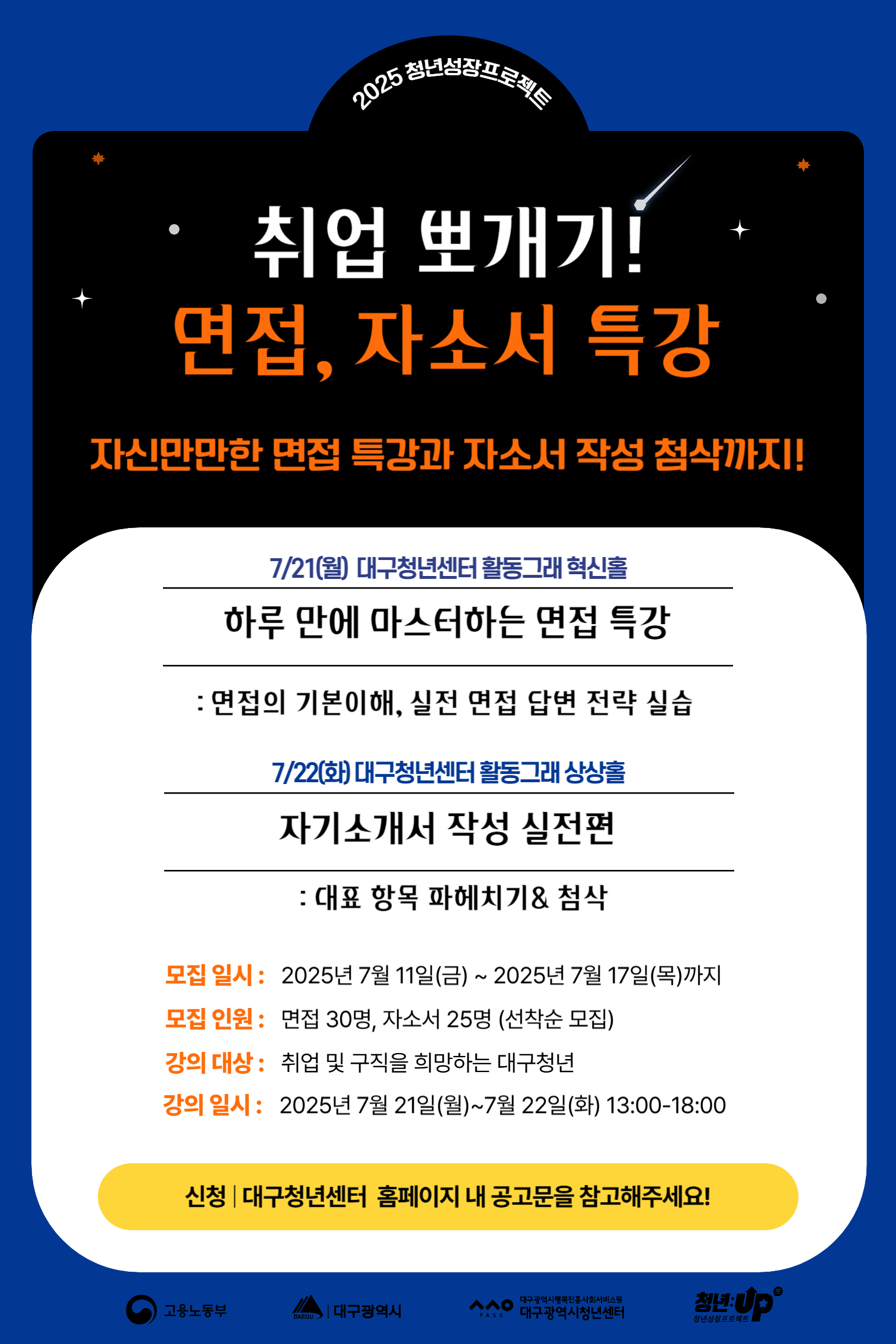 ◎ 모집기간 : ~ 2025년 7월 17일(목) 23:59까지 선착순 접수