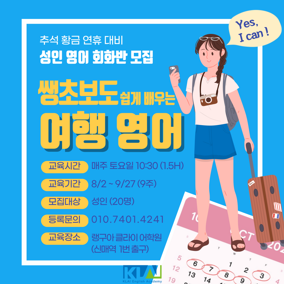 [추석 연휴 대비 성인 여행 영어회화 스터디 모집]