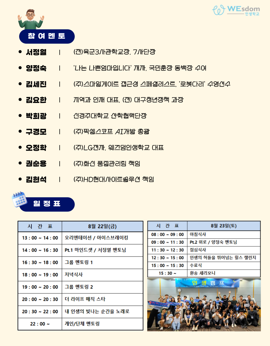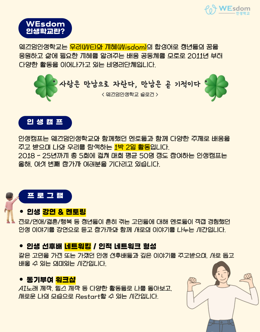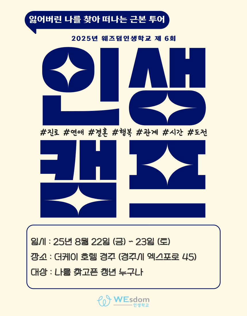 ☀️ 웨즈덤인생학교 제6회 인생캠프 안내☀️