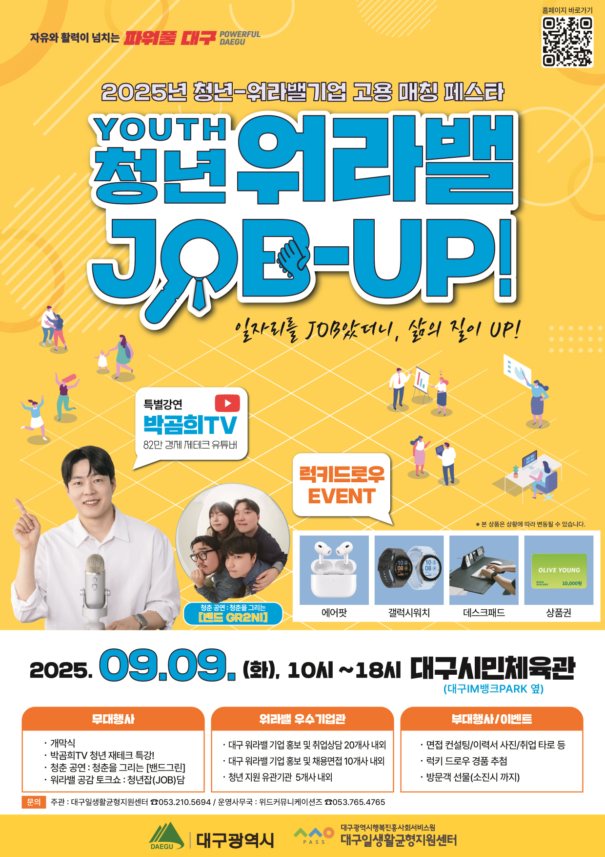 2025년 청년-워라밸기업 고용 매칭 페스타 청년 워라밸 JOB-UP!🎈작성자 : 대구일가정양립지원센터 작성일 : 25-07-28