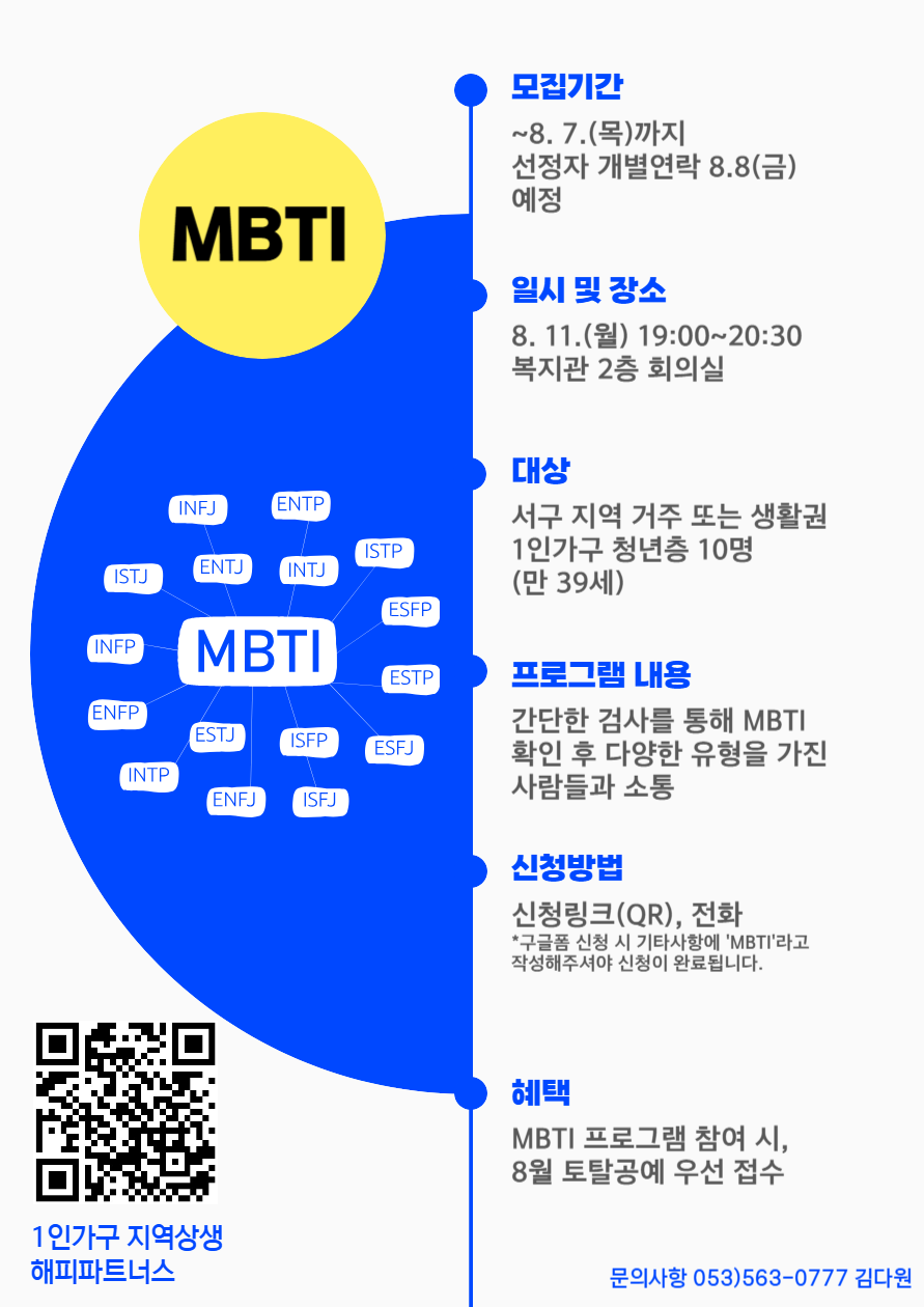 또한 MBTI 프로그램 신청하신 분들은 복지관에서 청년들에게 인기가 가장 많은 토탈공예 프로그램도 우선으로 접수 가능합니다!!