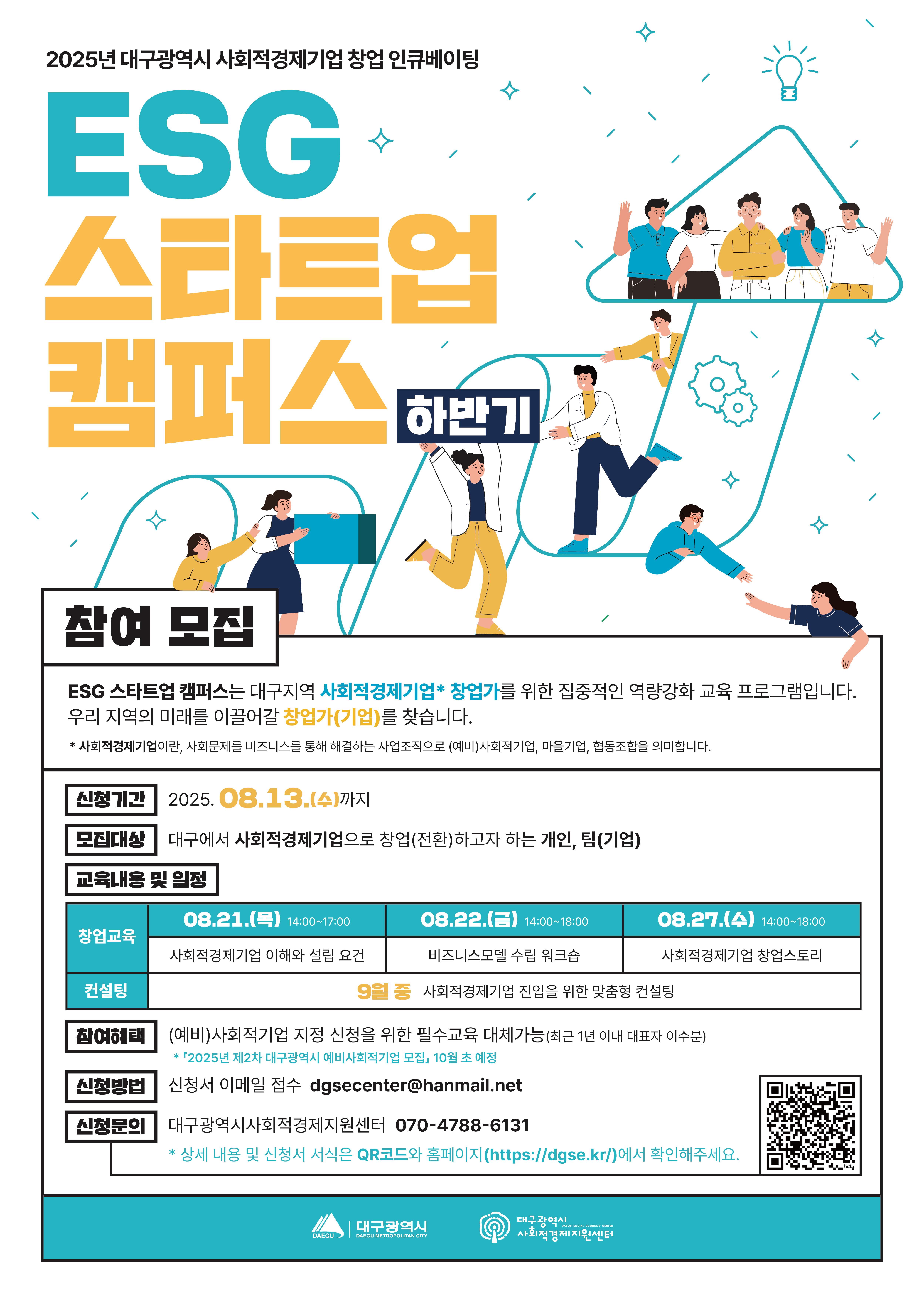 <「2025 대구시 사회적경제 창업 인큐베이팅 사업 : ESG 스타트업 캠퍼스(하반기)」 (예비)창업팀 모집 공고>